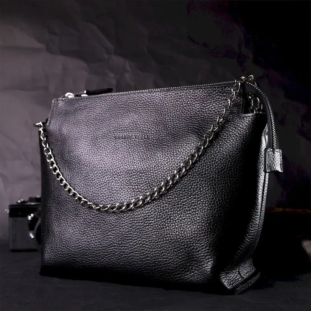Качественная женская сумка из натуральной кожи GRANDE PELLE 11655 Черная