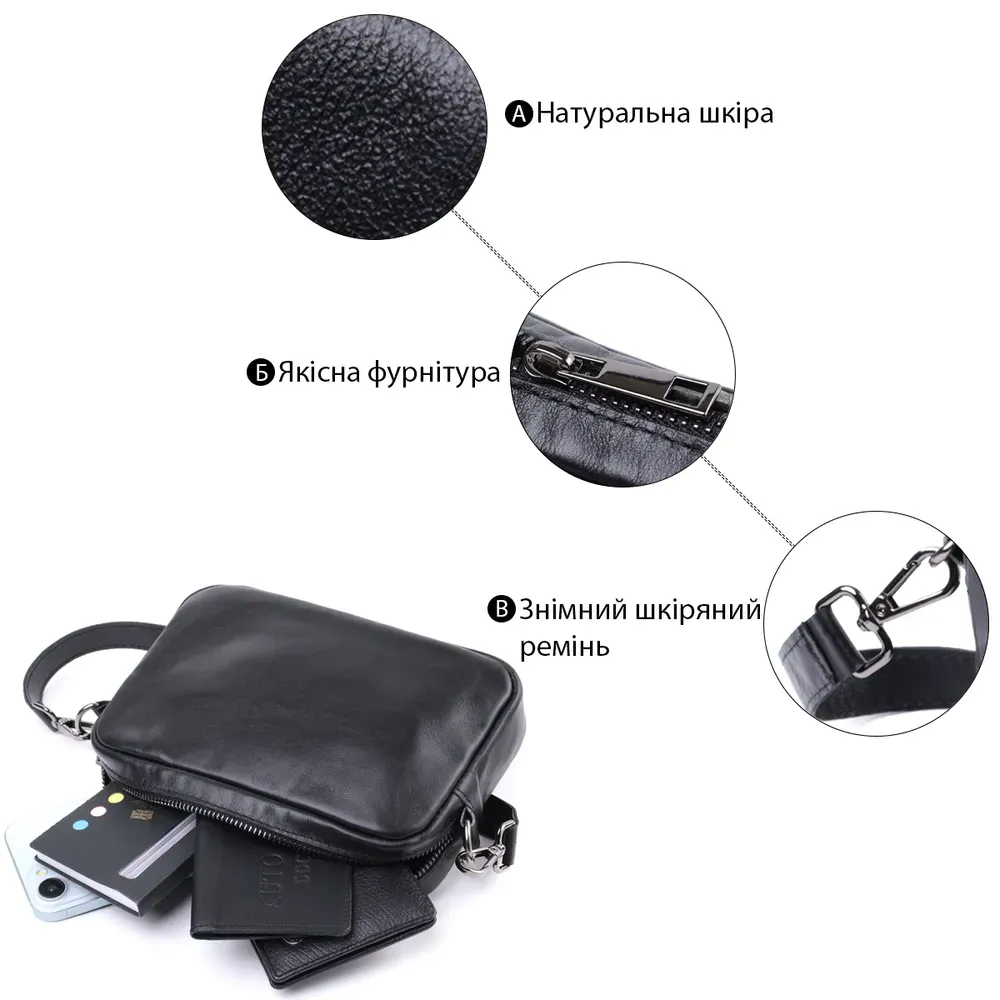 Класична сумка крос-боді з гладкої натуральної шкіри Shvigel 22841 Чорна