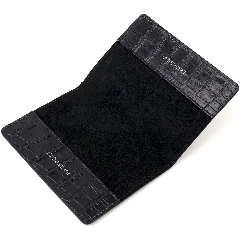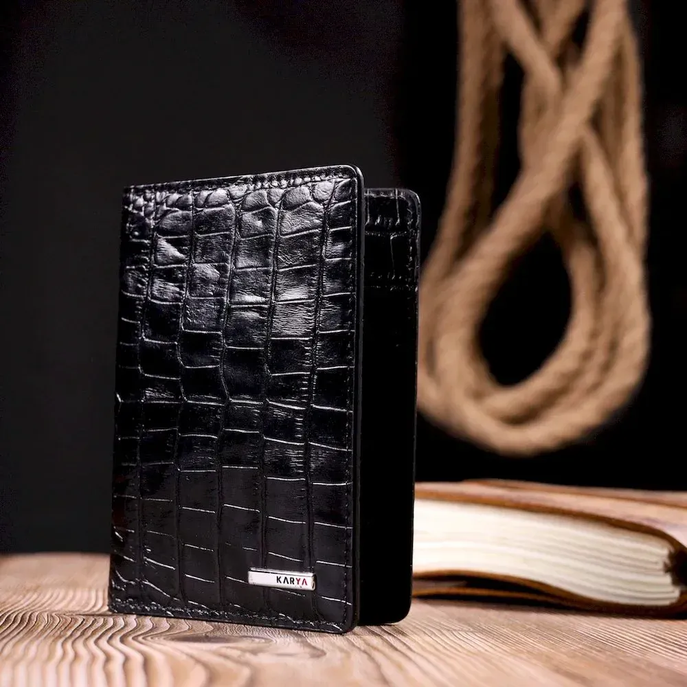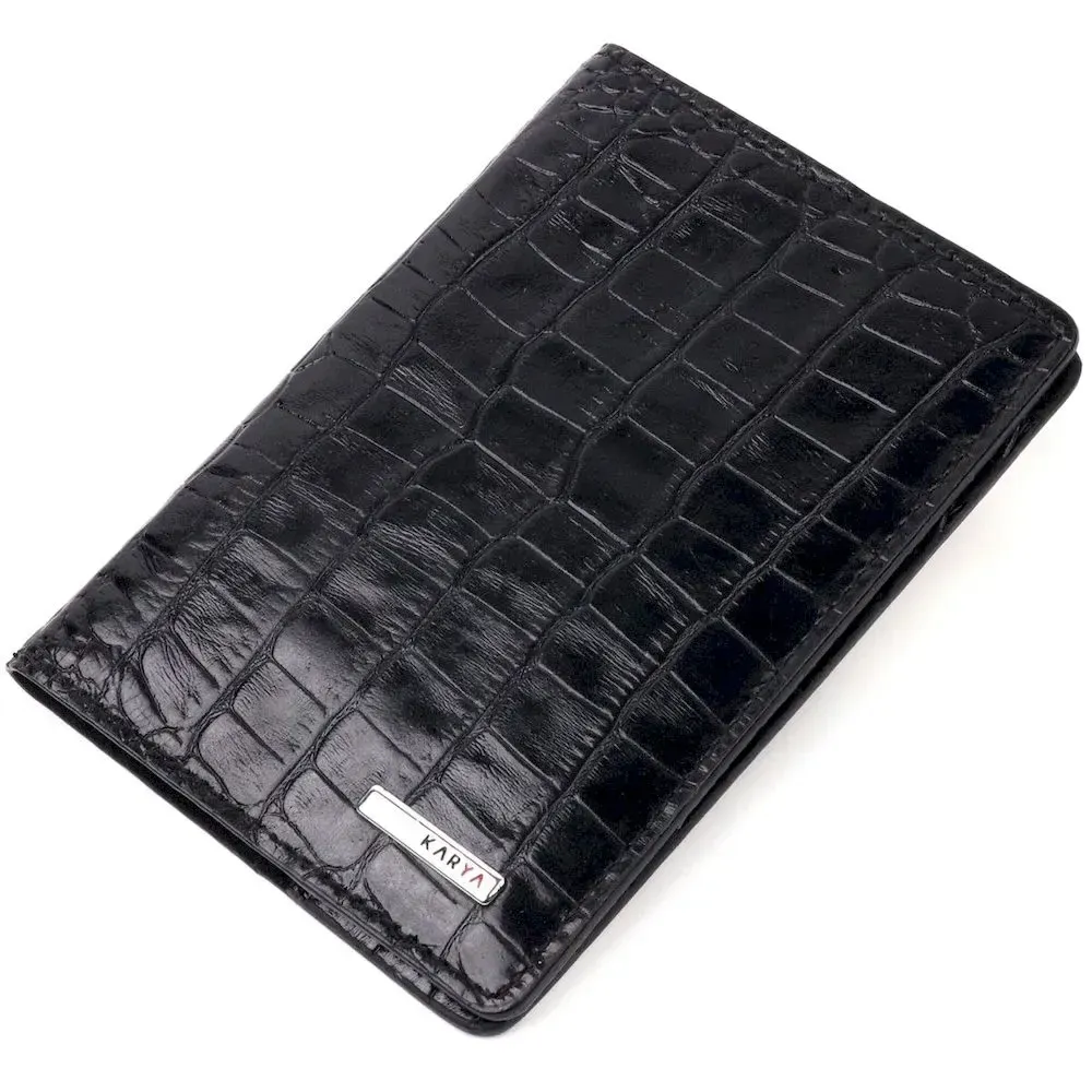 Классическая обложка на паспорт из фактурной кожи под рептилию KARYA 20927 Черный