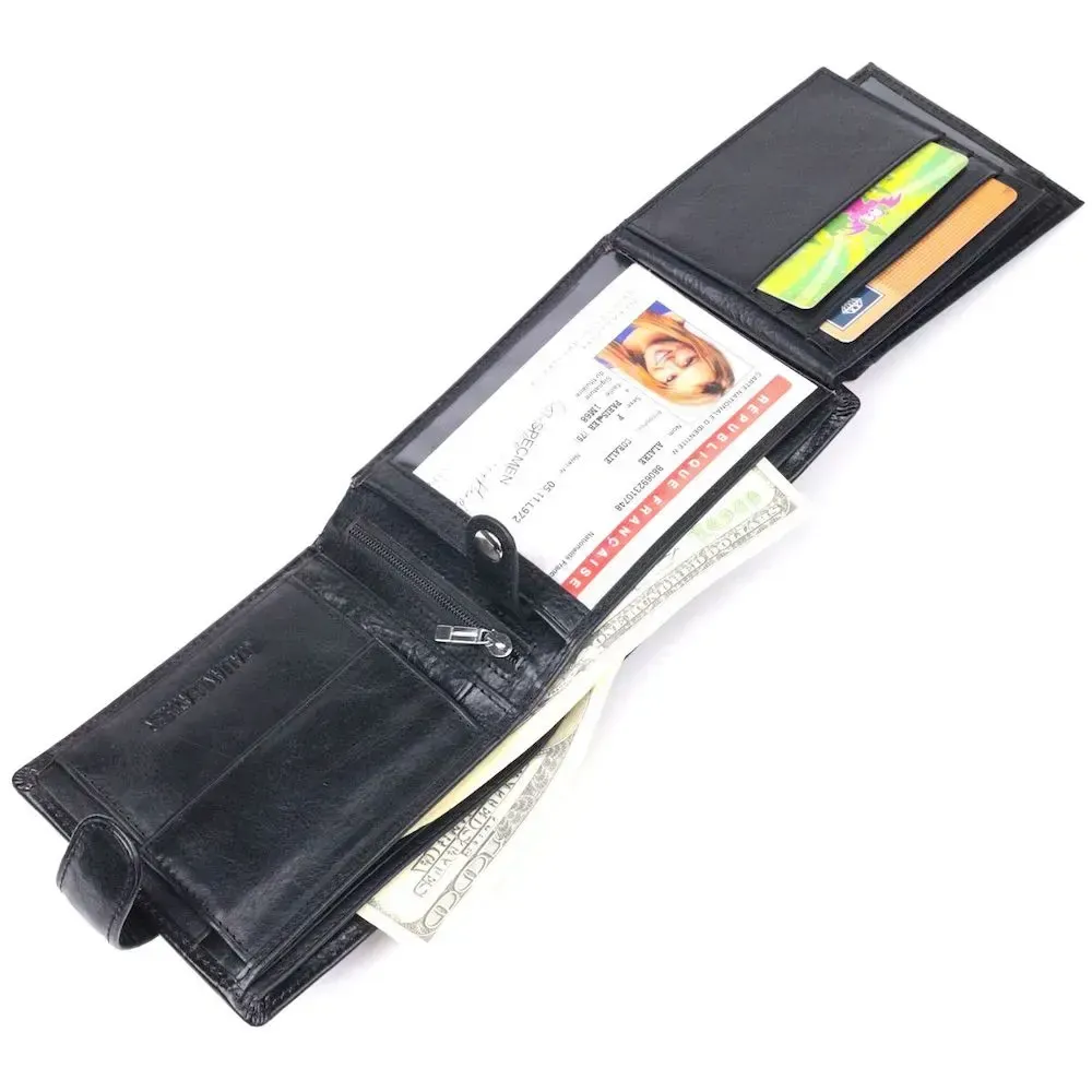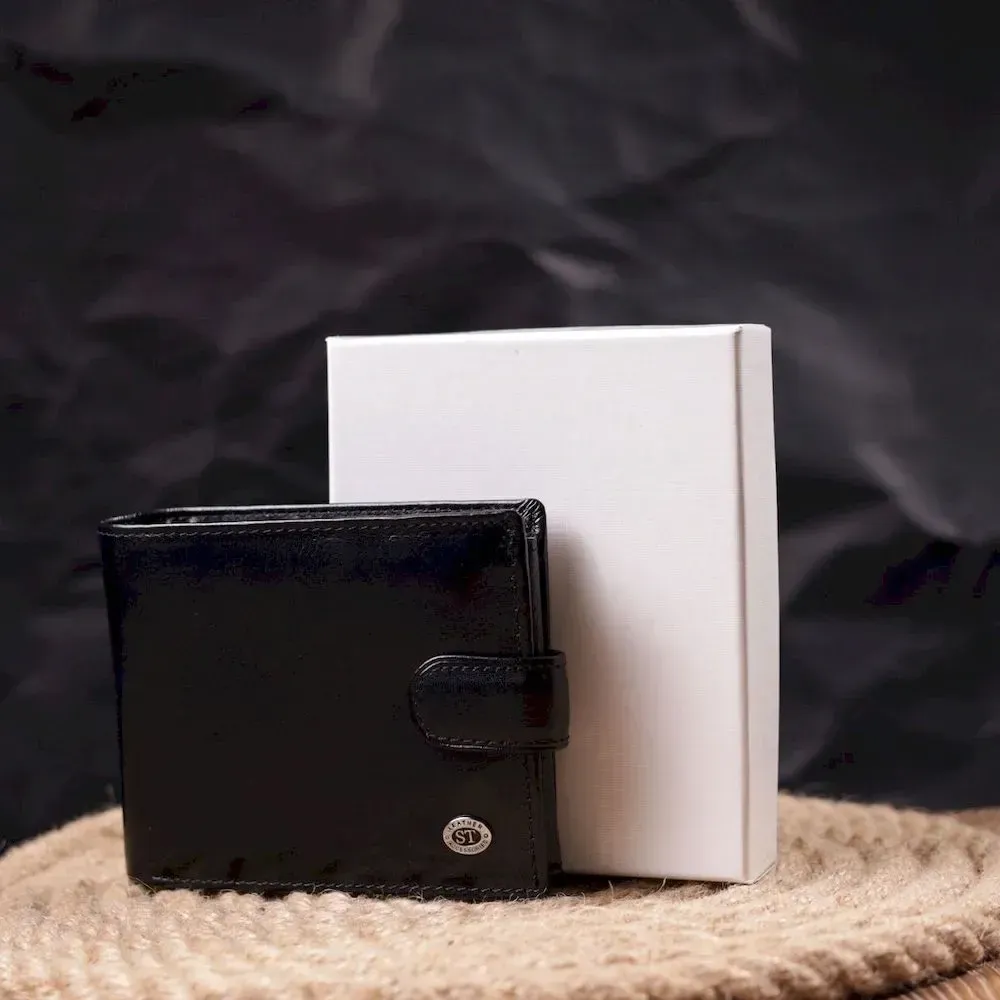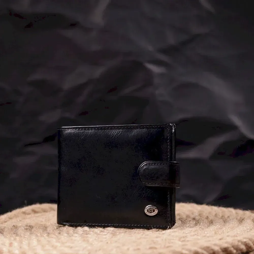 Классический мужской бумажник среднего размера из натуральной кожи ST Leather 19412 Черный