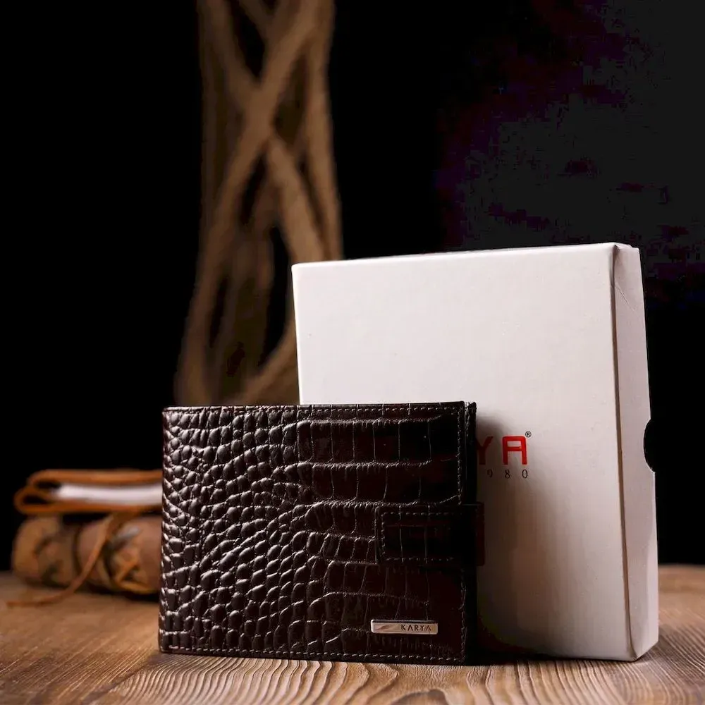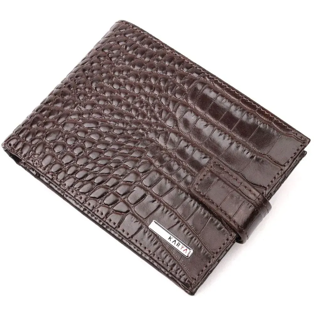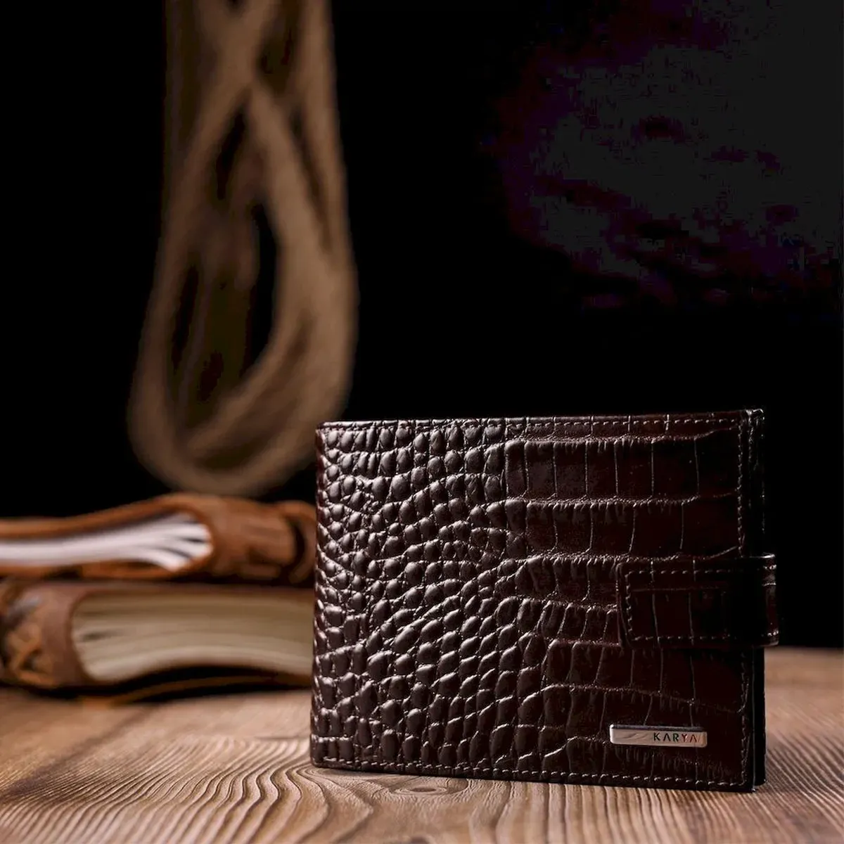 Классический мужской кошелек из натуральной кожи с тиснением под крокодила KARYA 21199 Коричневый