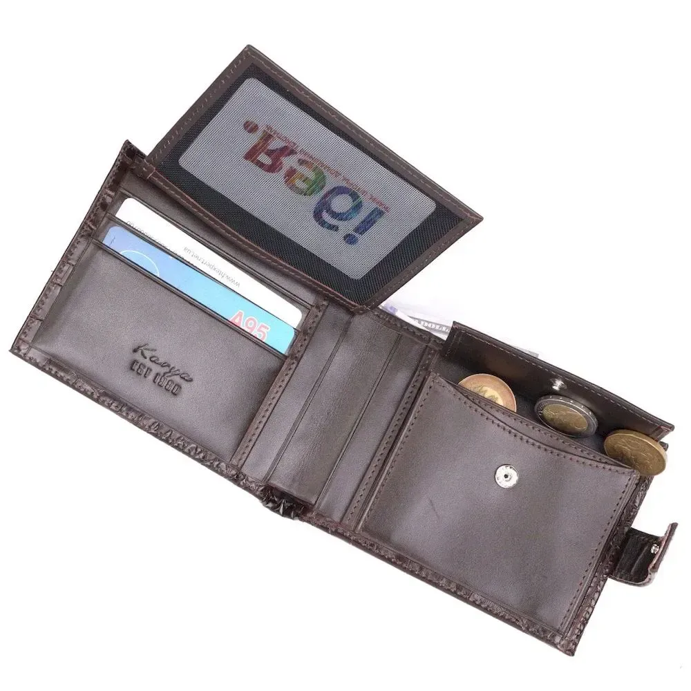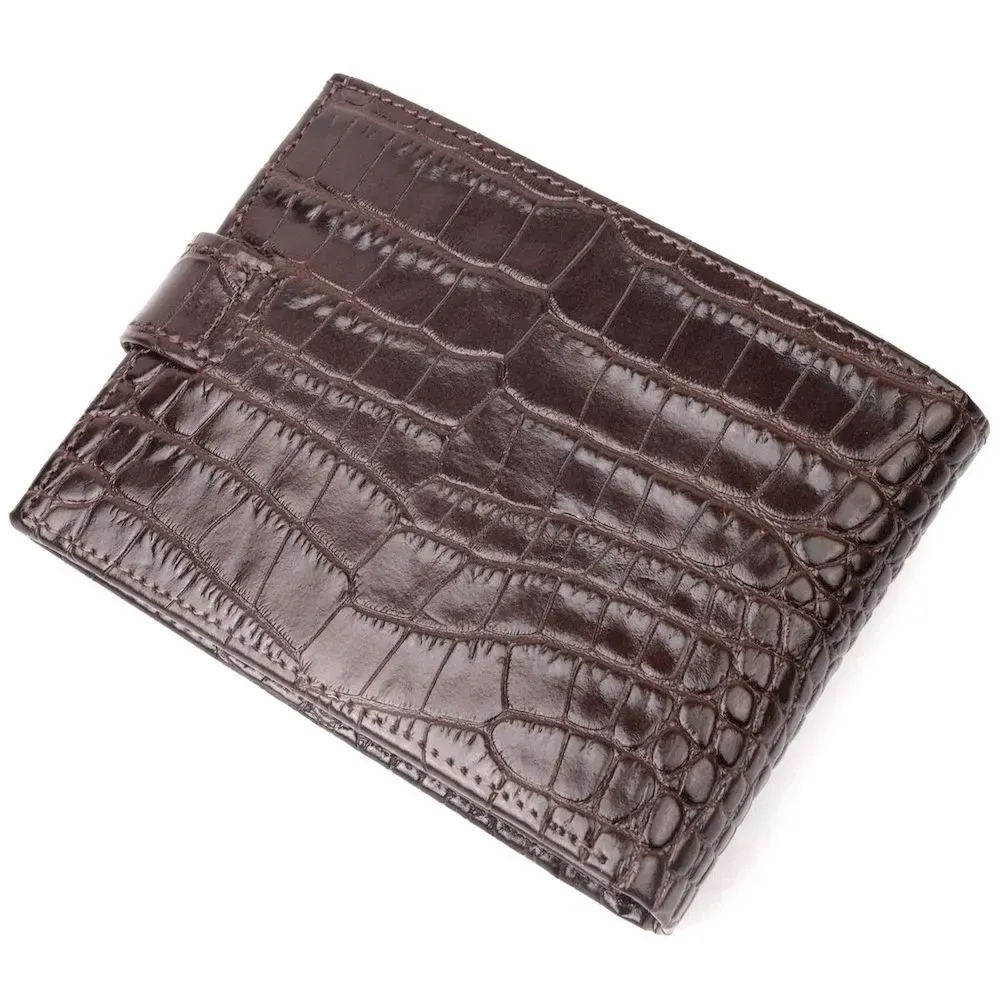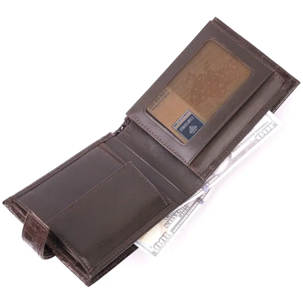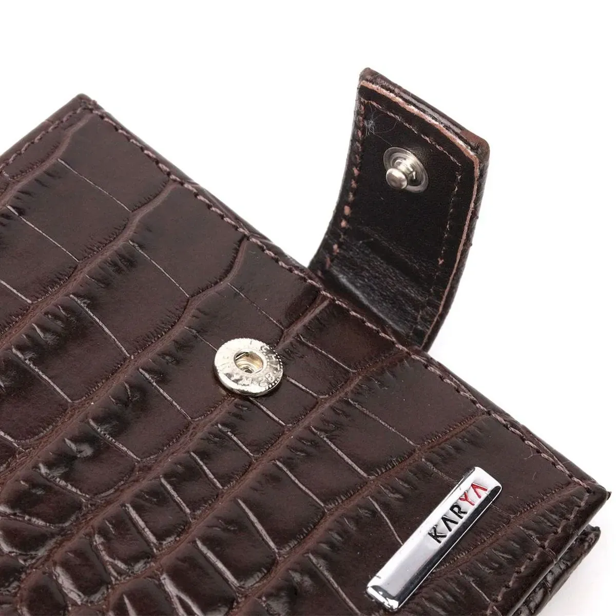 Классический мужской кошелек из натуральной кожи с тиснением под крокодила KARYA 21199 Коричневый