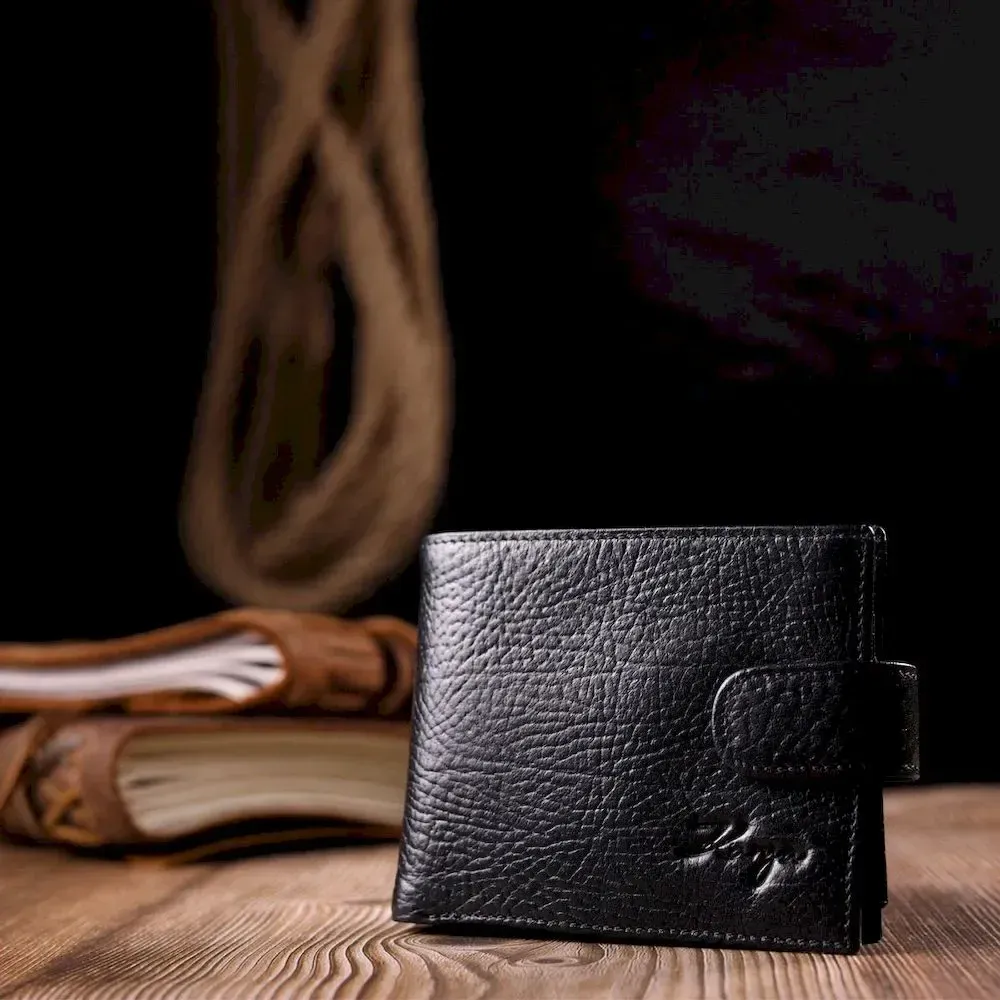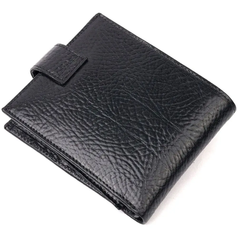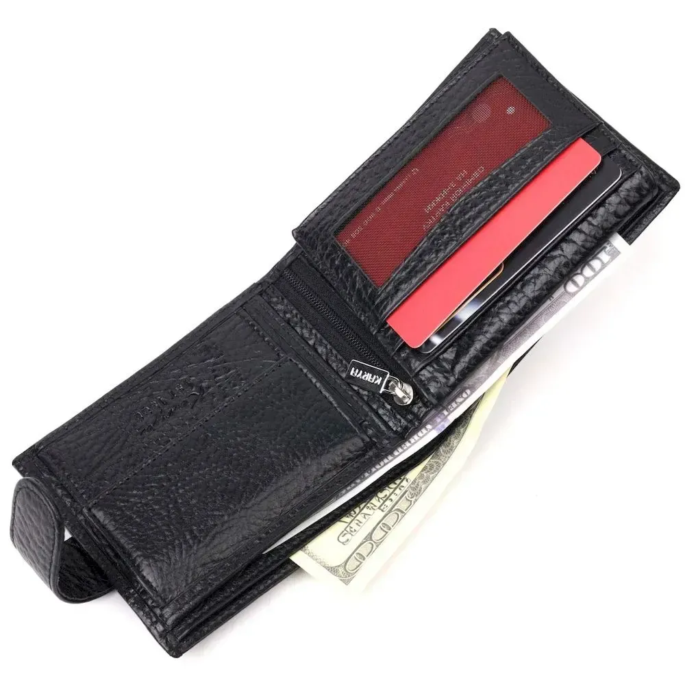Классический мужской кошелек с хлястиком из натуральной кожи KARYA 21077 Черный