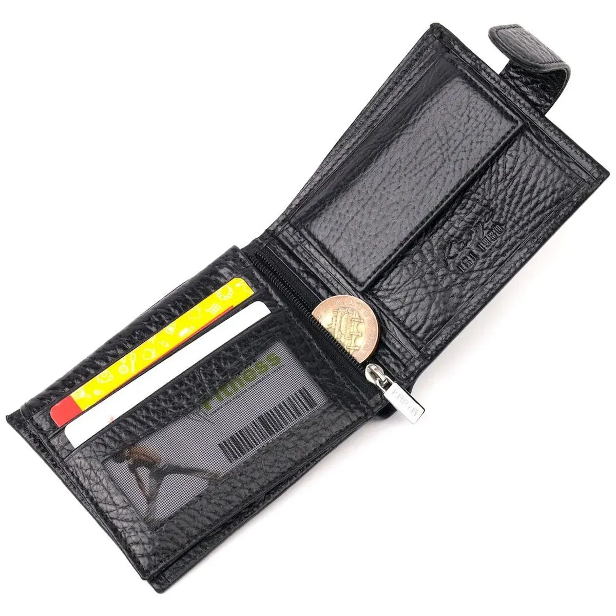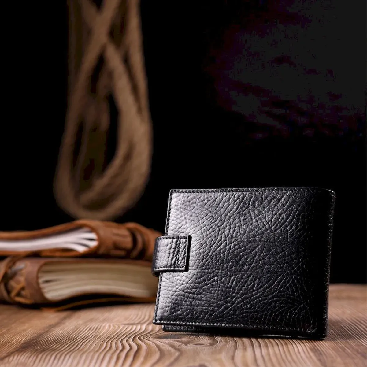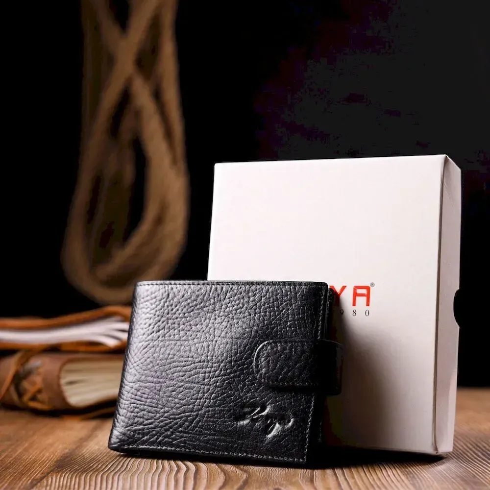 Классический мужской кошелек с хлястиком из натуральной кожи KARYA 21077 Черный