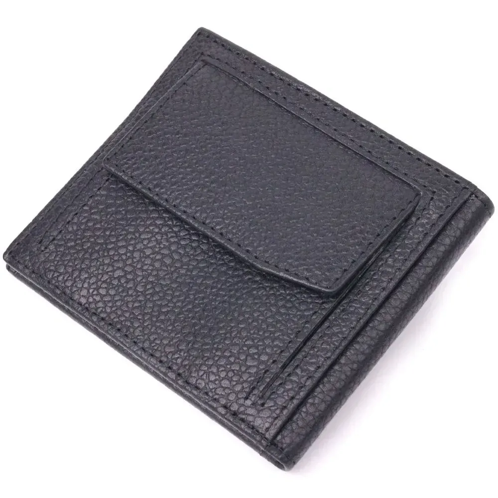 Классический мужской зажим из натуральной кожи, в черном цвете. Изделие закрывается в два сложения на магнит. Зажим состоит из двух уголков держателей для купюр, шести ячеек для кредитных карт, двух прилегающих карманов снаружи и монетницы, что закрывается клапаном на кнопку. Аксессуар упакован в фирменную коробочку. Изделия из натуральной кожи всегда будут отличным подарком для близкого человека.