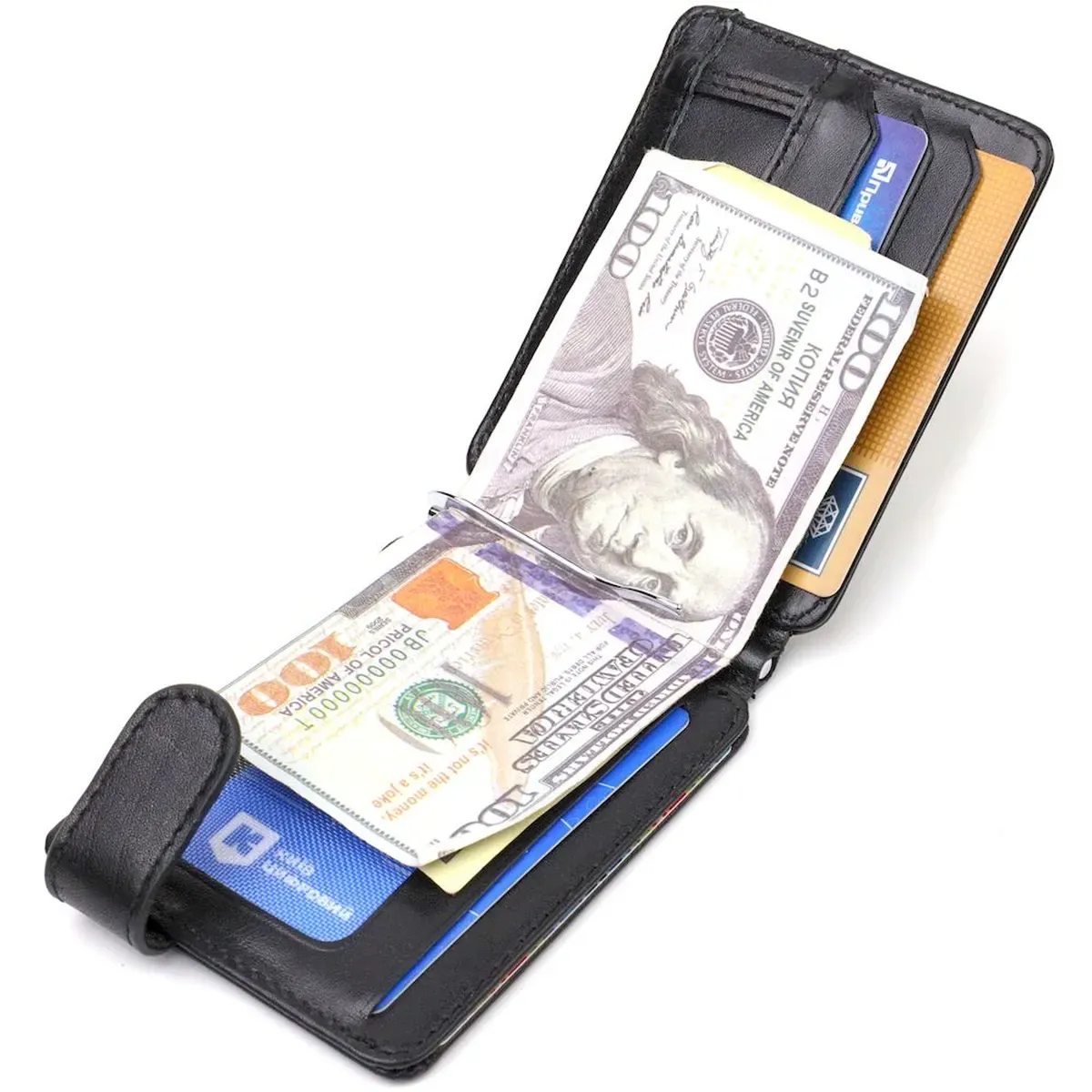 Мужской зажим для купюр выполнен из добротной натуральной кожи флотар, которая характеризуеться своей прочностью и износостойкостью. Купюры фиксируются металлическим держателем, также аксессуар имеет восемь ячеек для карт, две из которых под сеточкой и один скрытый карман. Закрывается кожаным хлястиком в петельку. Польза зажима состоит в том, что он намного компактнее, чем кошелек, легко помещается в руку или карман. Аксессуар упакован в фирменную коробочку. Изделия из натуральной кожи всегда будут отличным подарком для близкого человека.