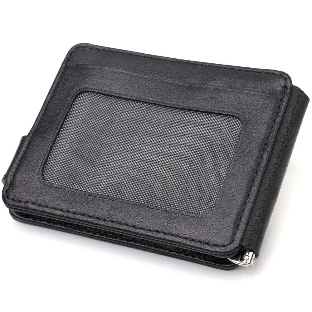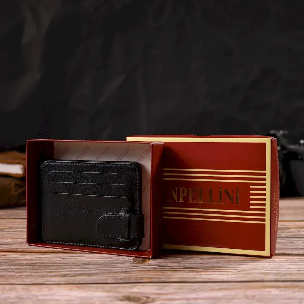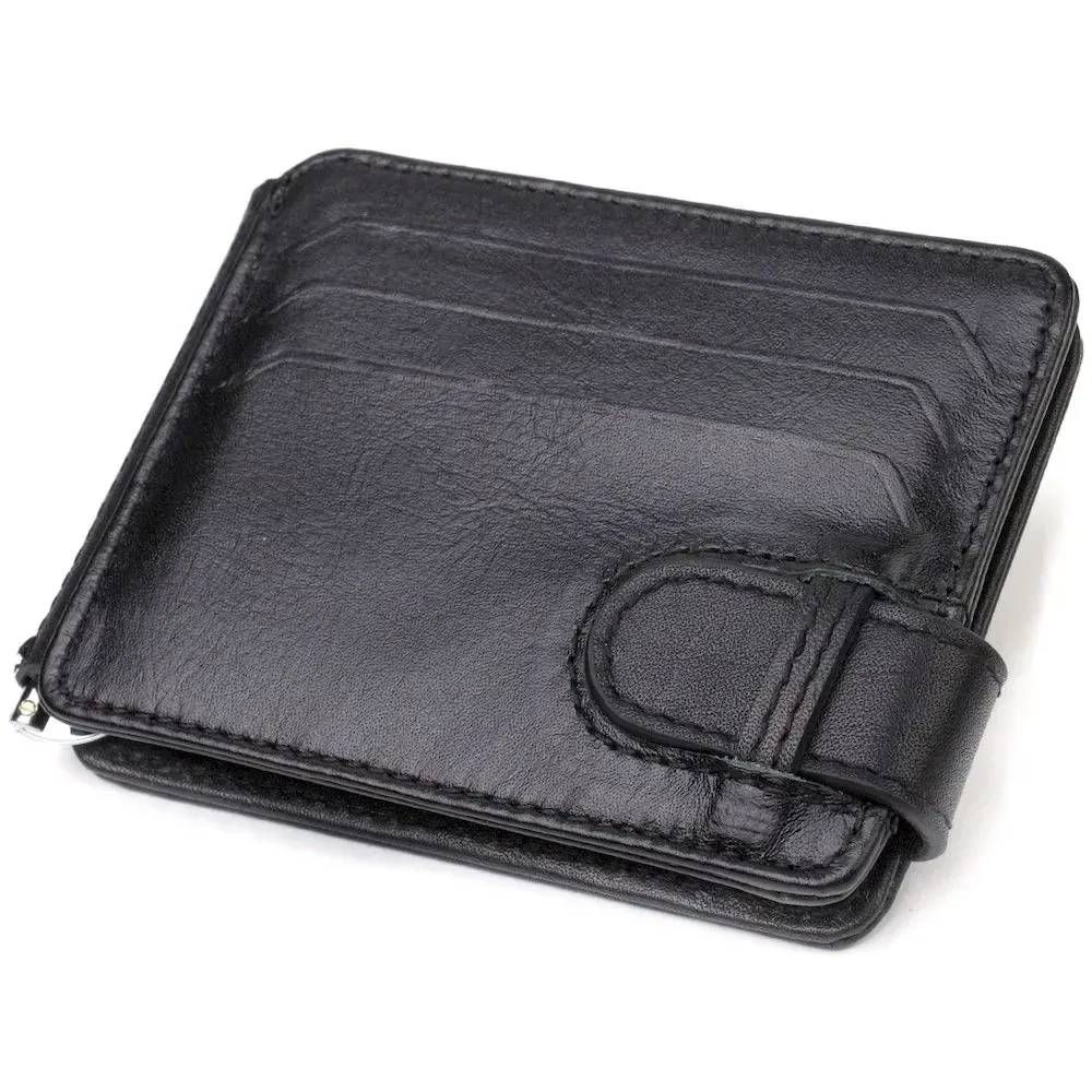 Классический надежный зажим для денег из натуральной гладкой кожи CANPELLINI 21939 Черный
