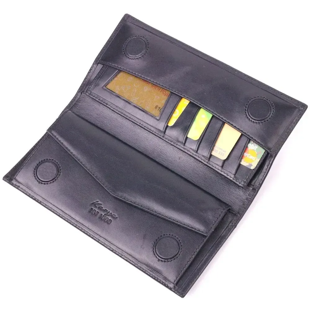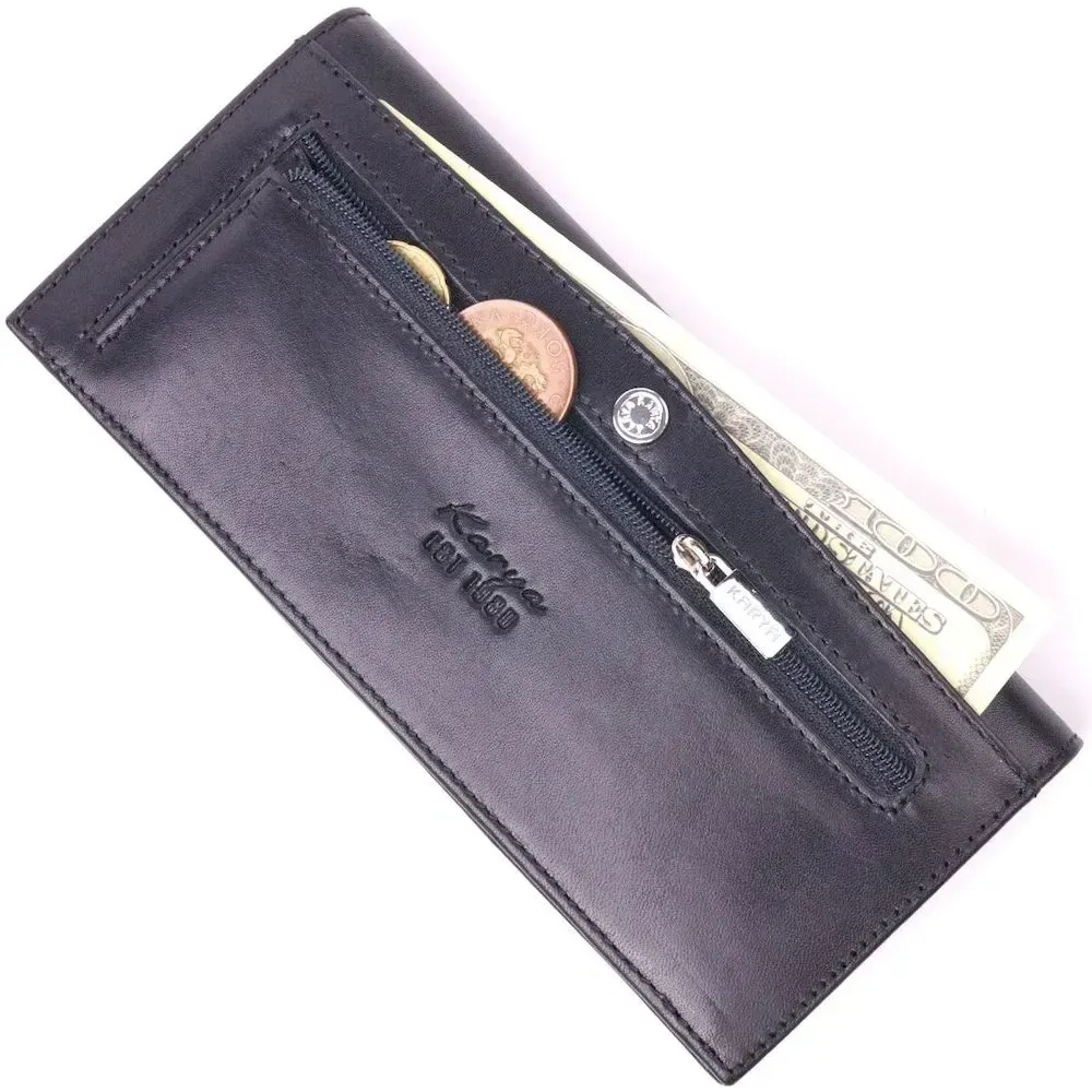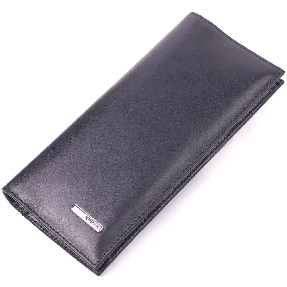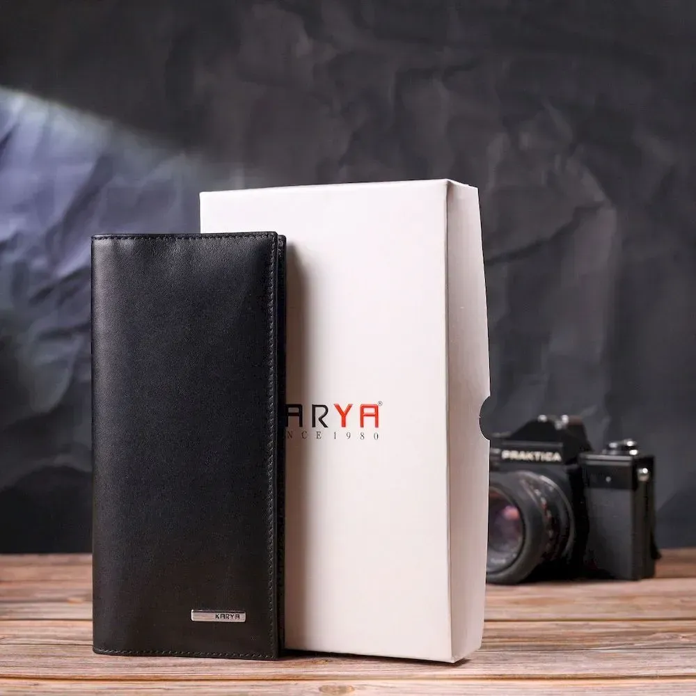 Классический вертикальный бумажник из натуральной гладкой кожи KARYA 21435 Черный