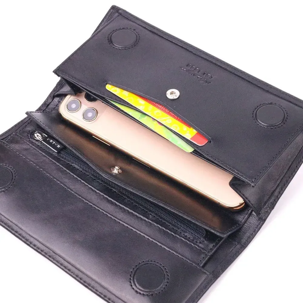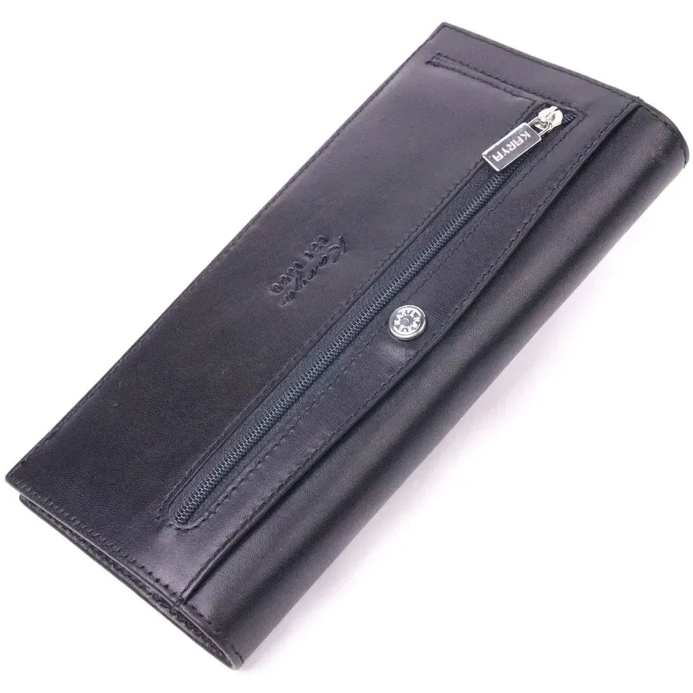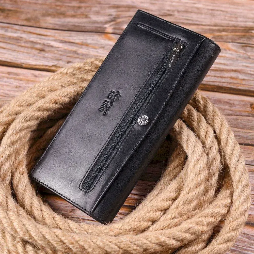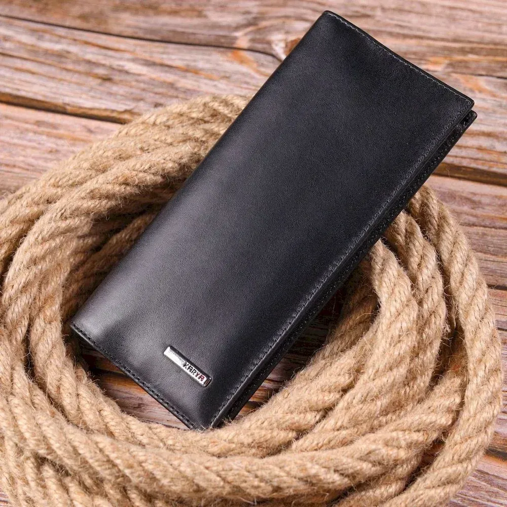 Классический вертикальный бумажник из натуральной гладкой кожи KARYA 21435 Черный