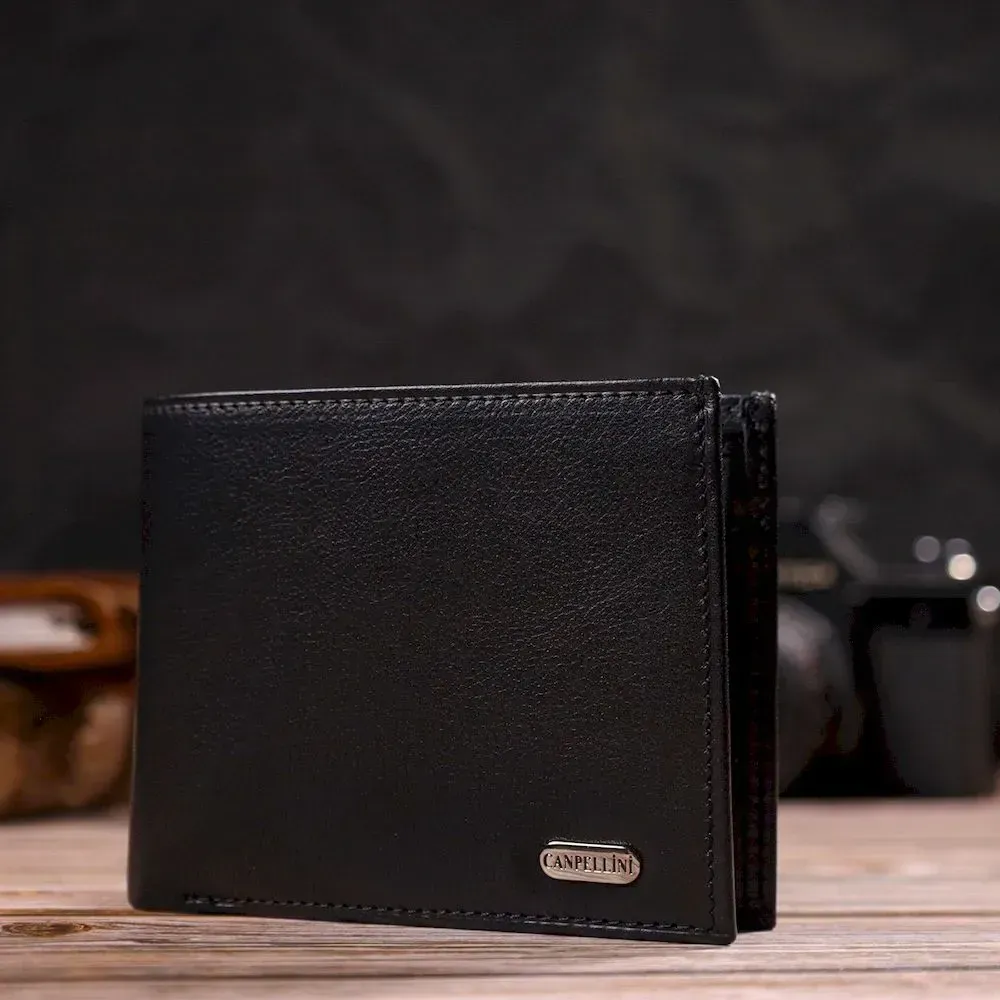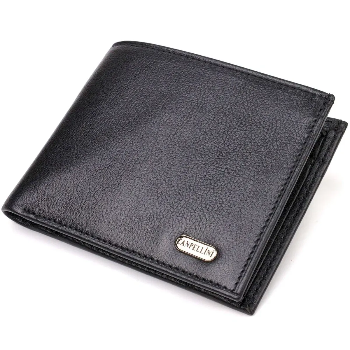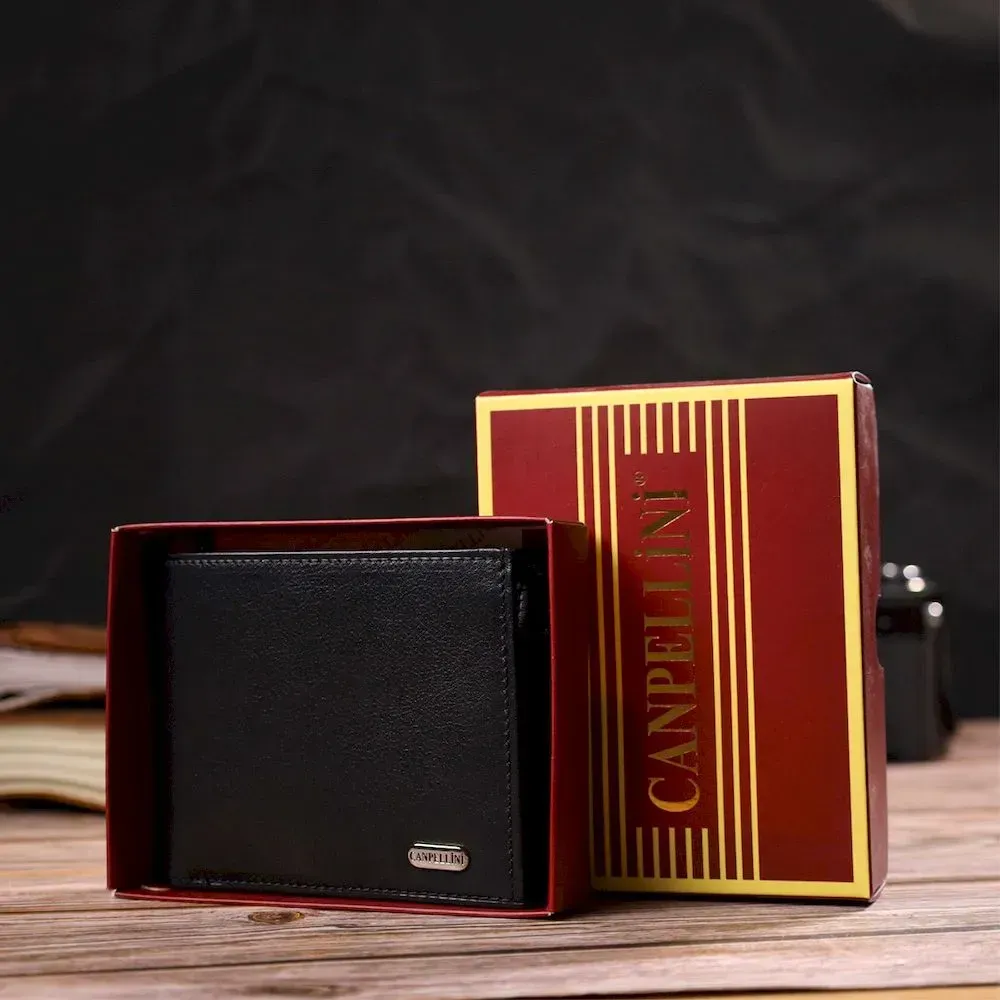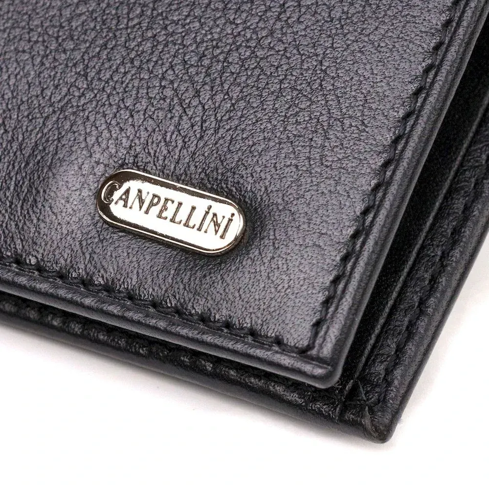 Классическое горизонтальное мужское портмоне из натуральной кожи флотар CANPELLINI 21778 Черное