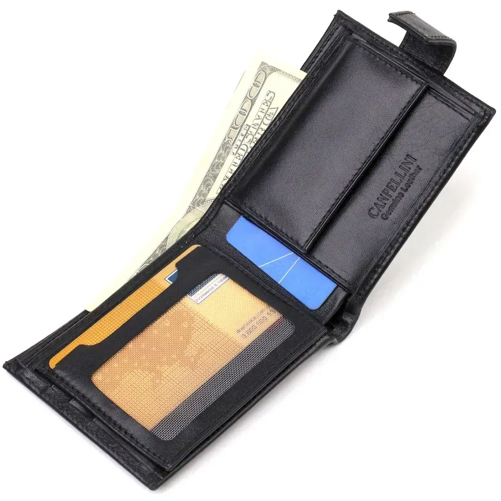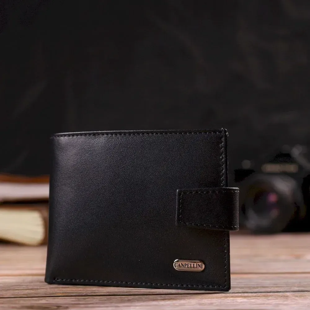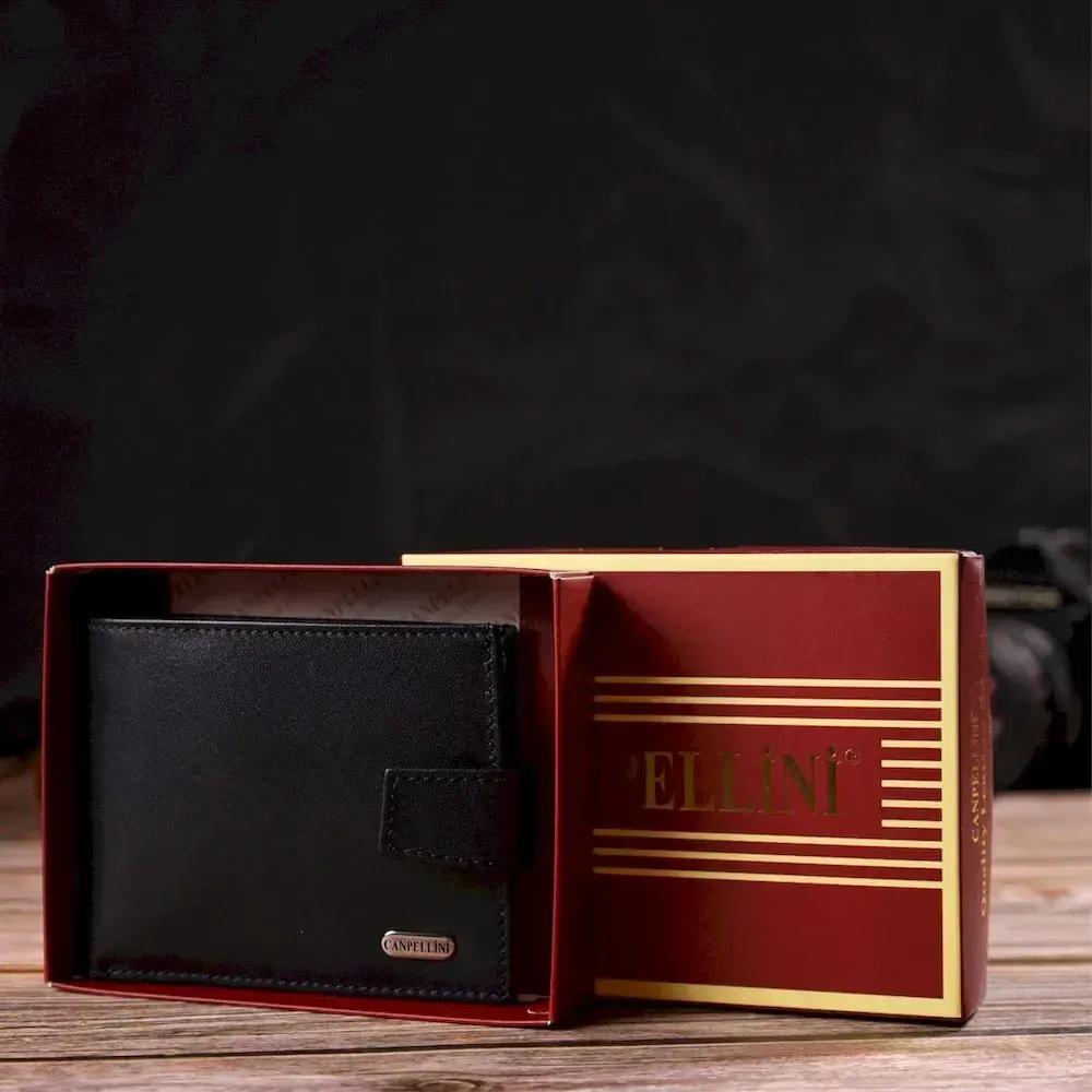 Классическое портмоне для мужчин из натуральной гладкой кожи CANPELLINI 21882 Черное