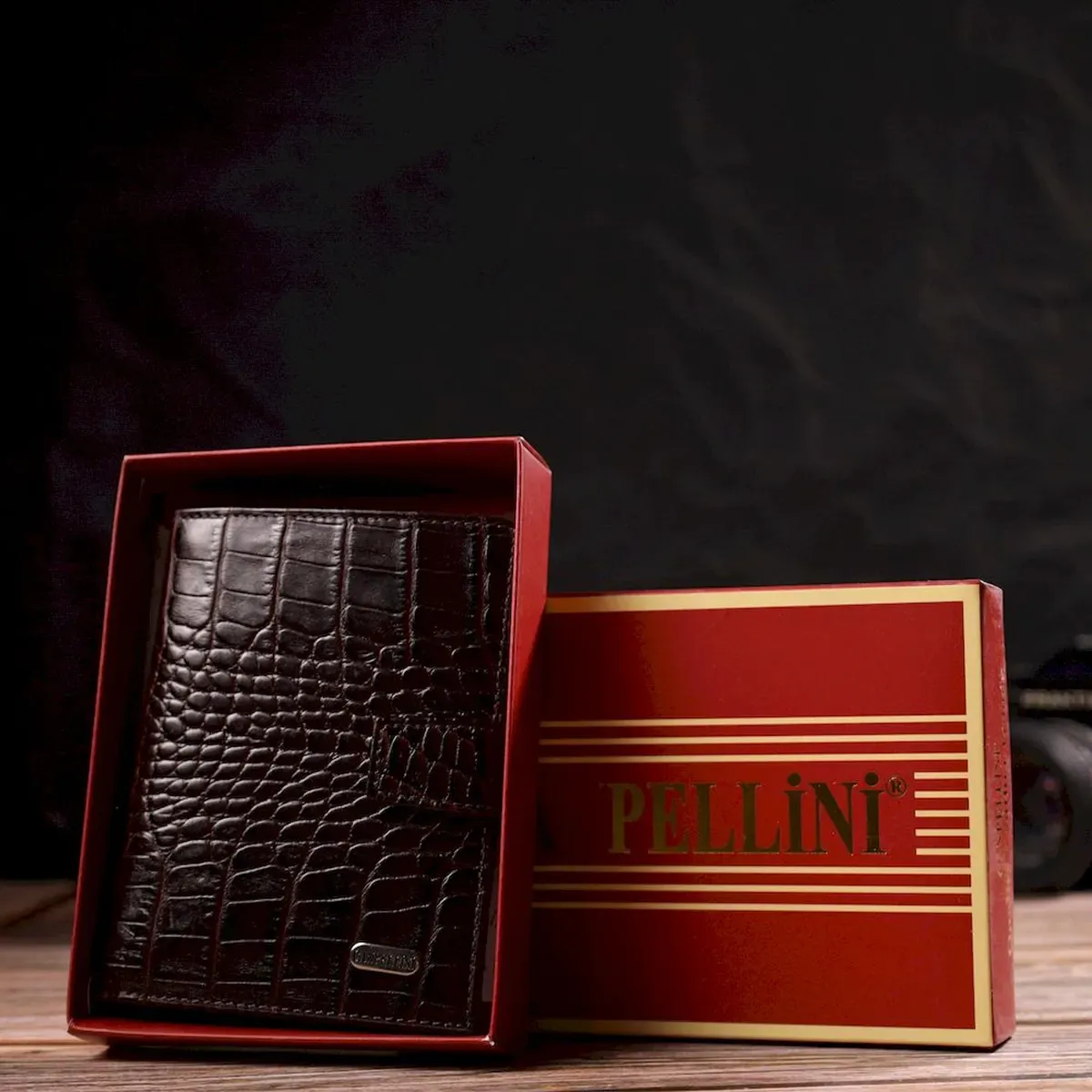 Классическое вертикальное мужское портмоне среднего размера из натуральной кожи с тиснением под крокодила CANPELLINI 21733 Коричневое