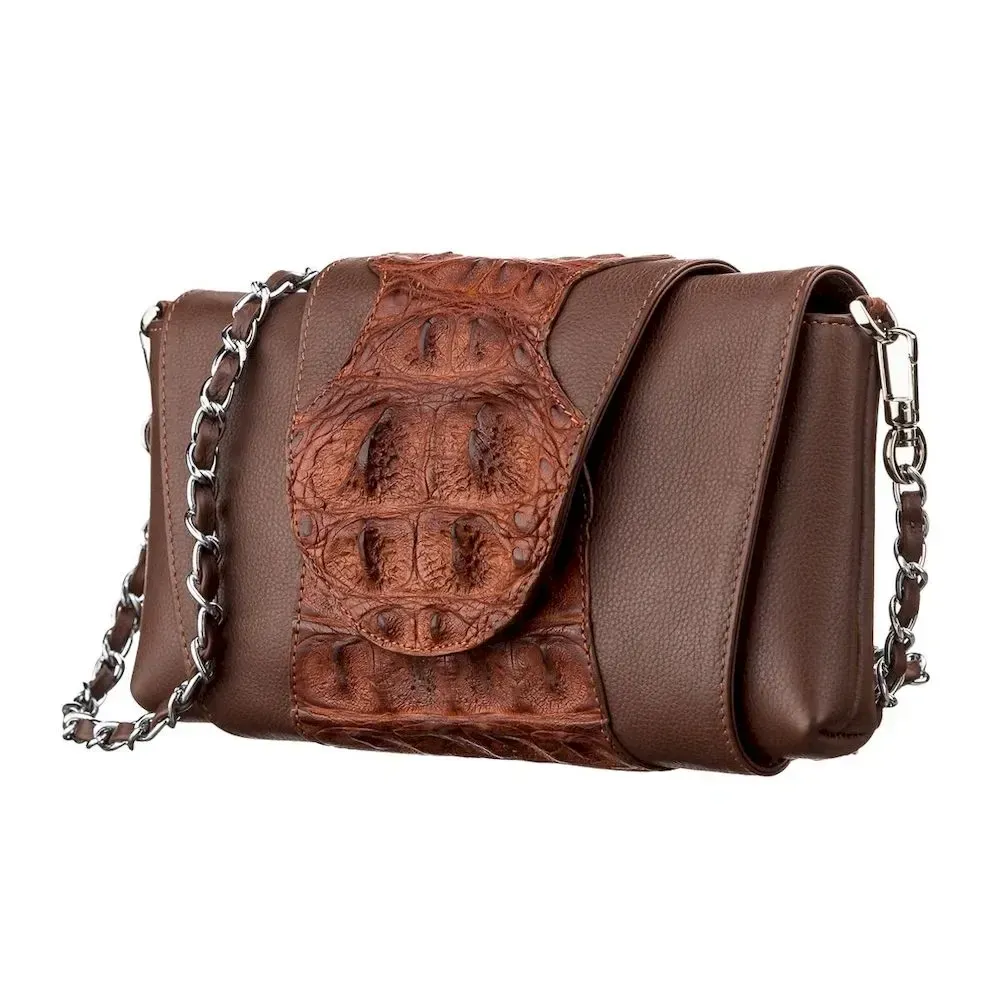 Клатч CROCODILE LEATHER 18245 из натуральной кожи крокодила Коричневый