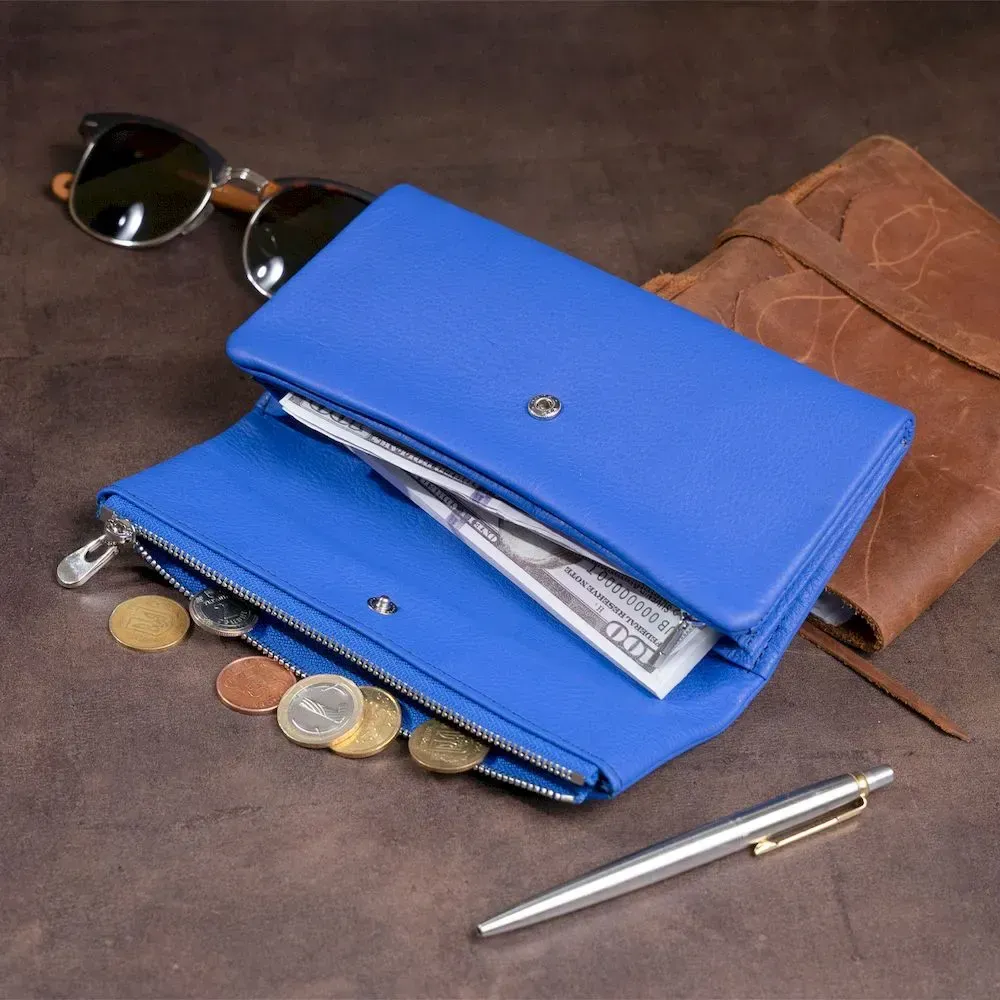 Клатч конверт с карманом для мобильного кожаный женский ST Leather 19268 Синий