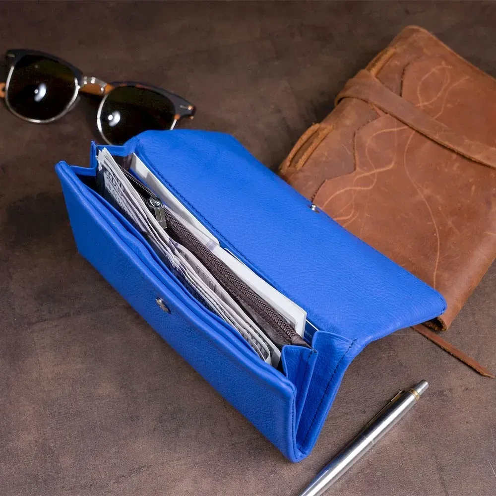 Новинка в нашем магазине! Клатч-конверт для настоящих практичных девушек. Вы будете в шоке от универсальности изделия. Дело в том, что крышка клатча имеет сплошной карман на молнии который легко поместит паспорт и ваш мобильный. То есть в такой клатч поместятся не только ваши карточки купюры, но и документы и мобильный. Выходит, что один маленький клатч конверт заменит вам и кошелек и вечернюю сумочку. Яркий синий цвет выглядит очень дорого и не оставит представительниц женского пола равнодушными. Мы уверены, что вы оцените данную модель. Натуральная кожа из которой выполнен клатч высочайшего качества, поэтому модель прослужит вам долго. В комплекте идет фирменная коробка. А это облегчит вашу задачу с упаковкой клатча, если вы выберете его в качестве подарка. Модель доступна в нашем магазине в нескольких цветах.