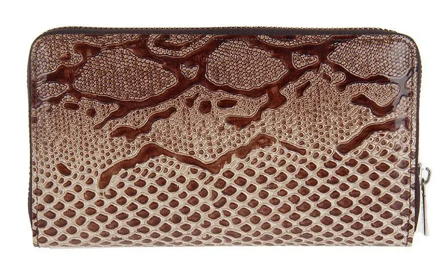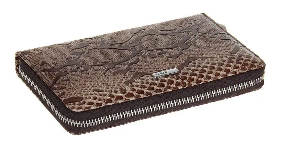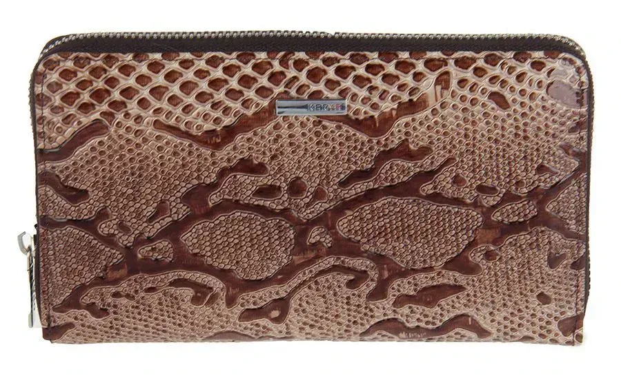 Оригинальный женский кошелек-клатч, из натуральной кожи с фактурой под рептилию. В аксессуаре использована качественная и стильная фурнитура. Цвет фурнитуры: серебро. Такой кошелек очень вместительный, в него легко помещается мобильный телефон, документы и другие мелочи. Отличная идея для подарка, которая не оставит равнодушной ни одну женщину.