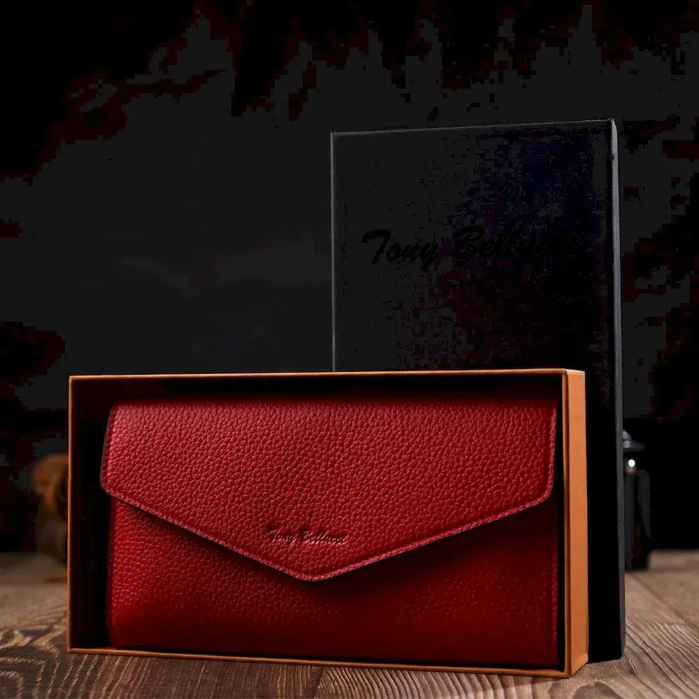 Комбинированное женское большое портмоне из натуральной кожи Tony Bellucci 21974 Красный