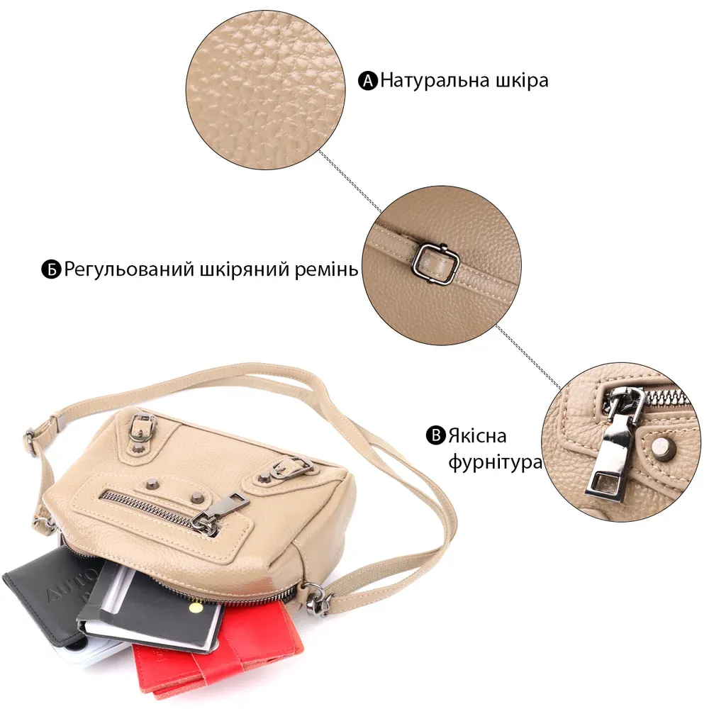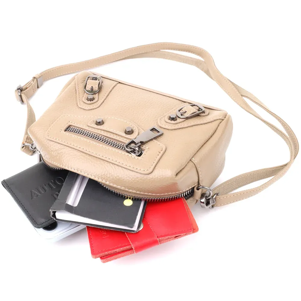 Компактна сумка для жінок з натуральної шкіри Vintage 22924 Бежевий