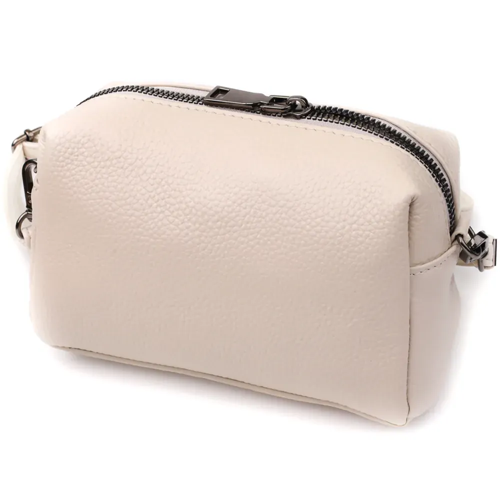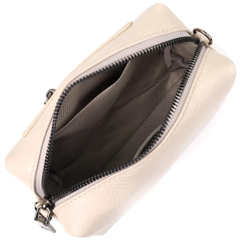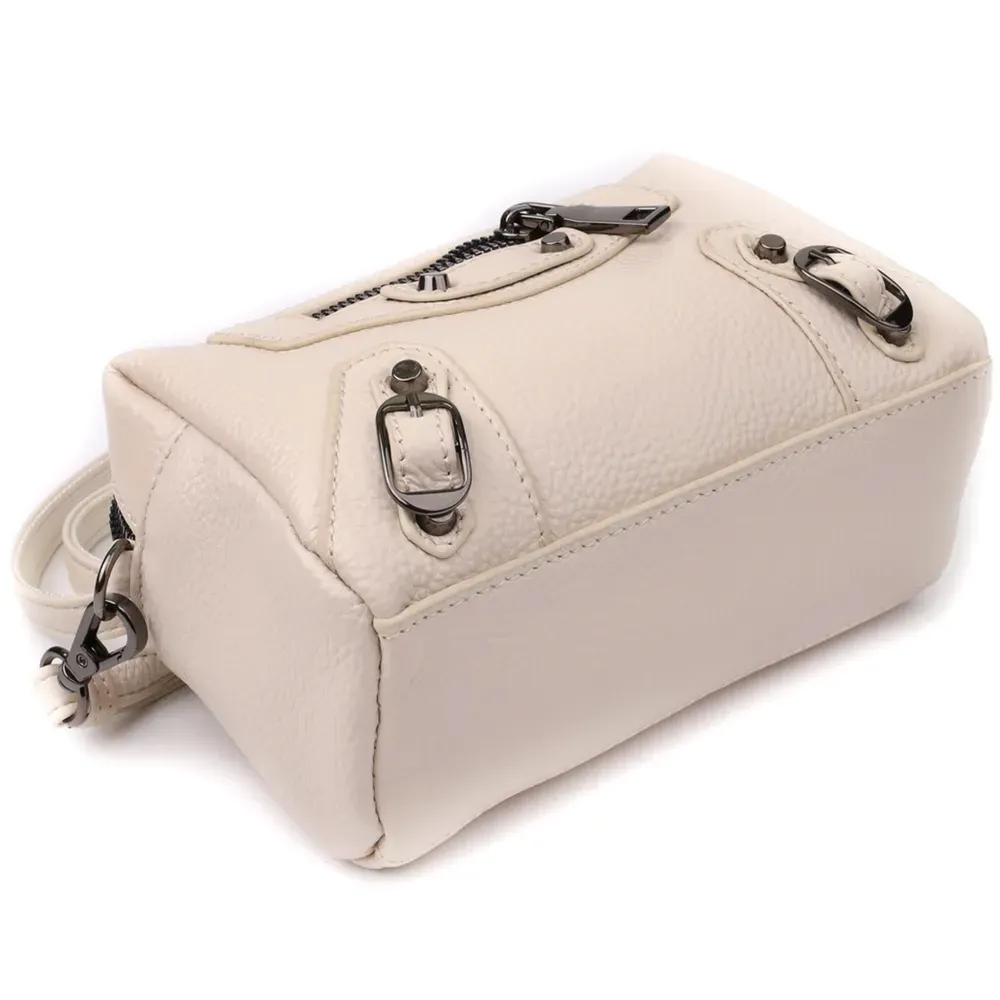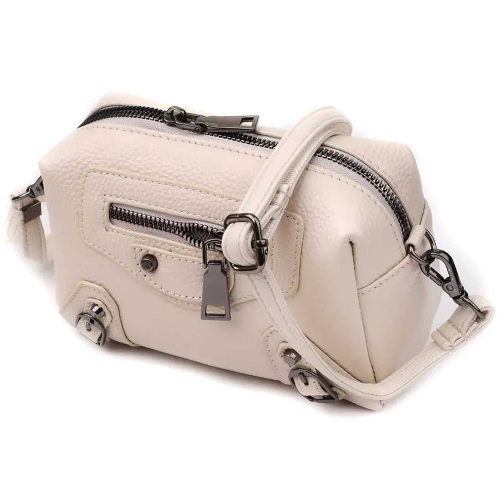 Компактна сумка жіноча з трендовим декором з натуральної шкіри Vintage 22923 Білий