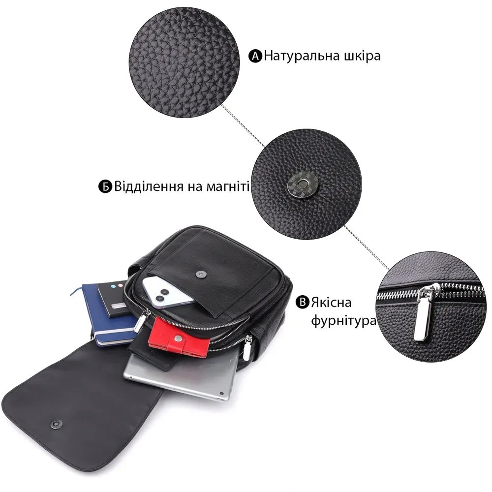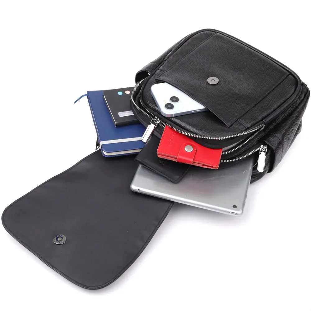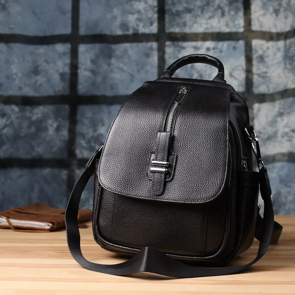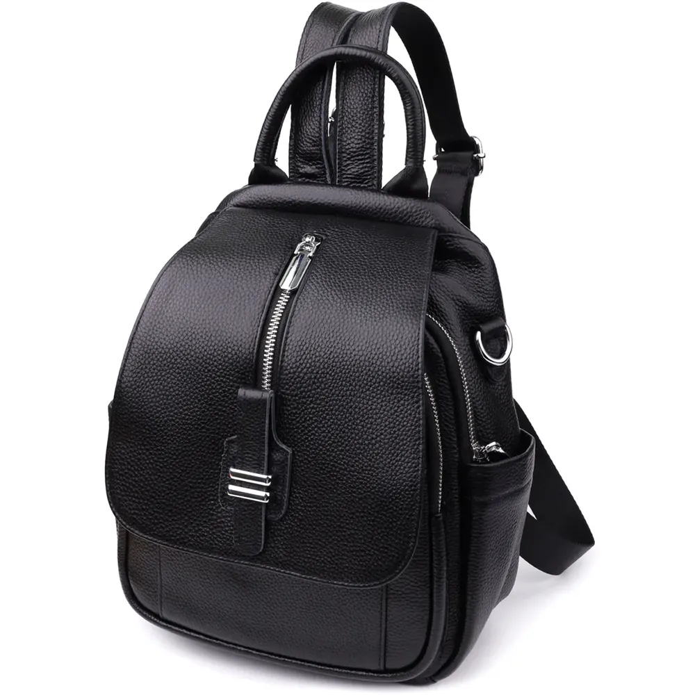 Компактний жіночий рюкзак з натуральної шкіри Vintage 23058 Чорний