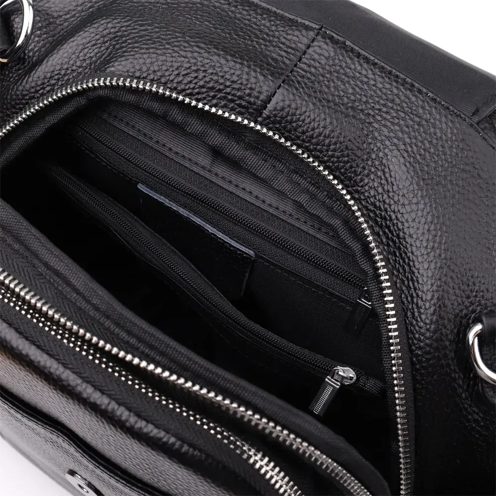 Жіночий шкіряний рюкзак поєднує продуманий функціонал і стильний дизайн. Він оснащений одним основним відділенням, яке закривається на блискавку з одним бігунком. Усередині знаходяться дві кишені на блискавці та одна відкритого типу — для зручної та акуратної організації особистих речей.