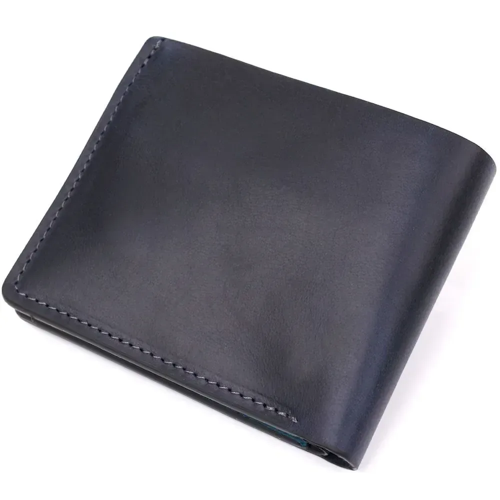 Великолепное портмоне идеально подойдет как мужчине, так и женщине. Спокойный синий цвет не уступает популярности черному и коричневому. Аксессуар изготовлен исключительно из натуральной итальянской кожи высочайшего качества. На лицевой стороне изделие имеет тисненный логотип бренда производителя. По краям дизайн украшает ровная строчка синего цвета. Закрывается аксессуар надежным магнитом. Портмоне станет идеальным подарком для близкого человека. Модель упакована в фирменную картонную коробку.