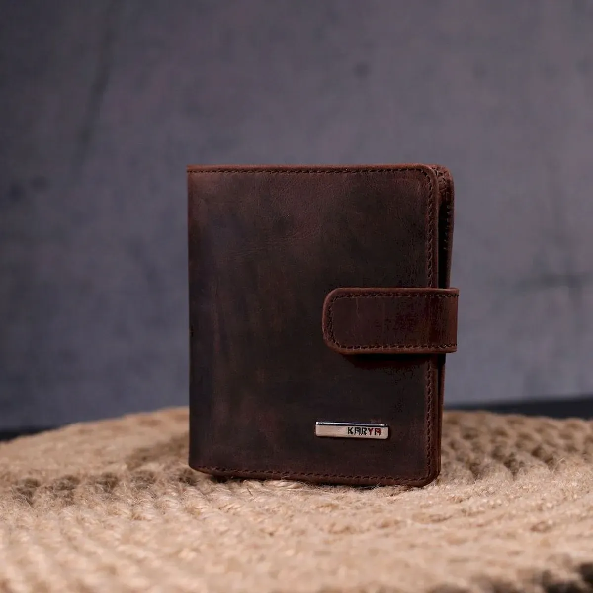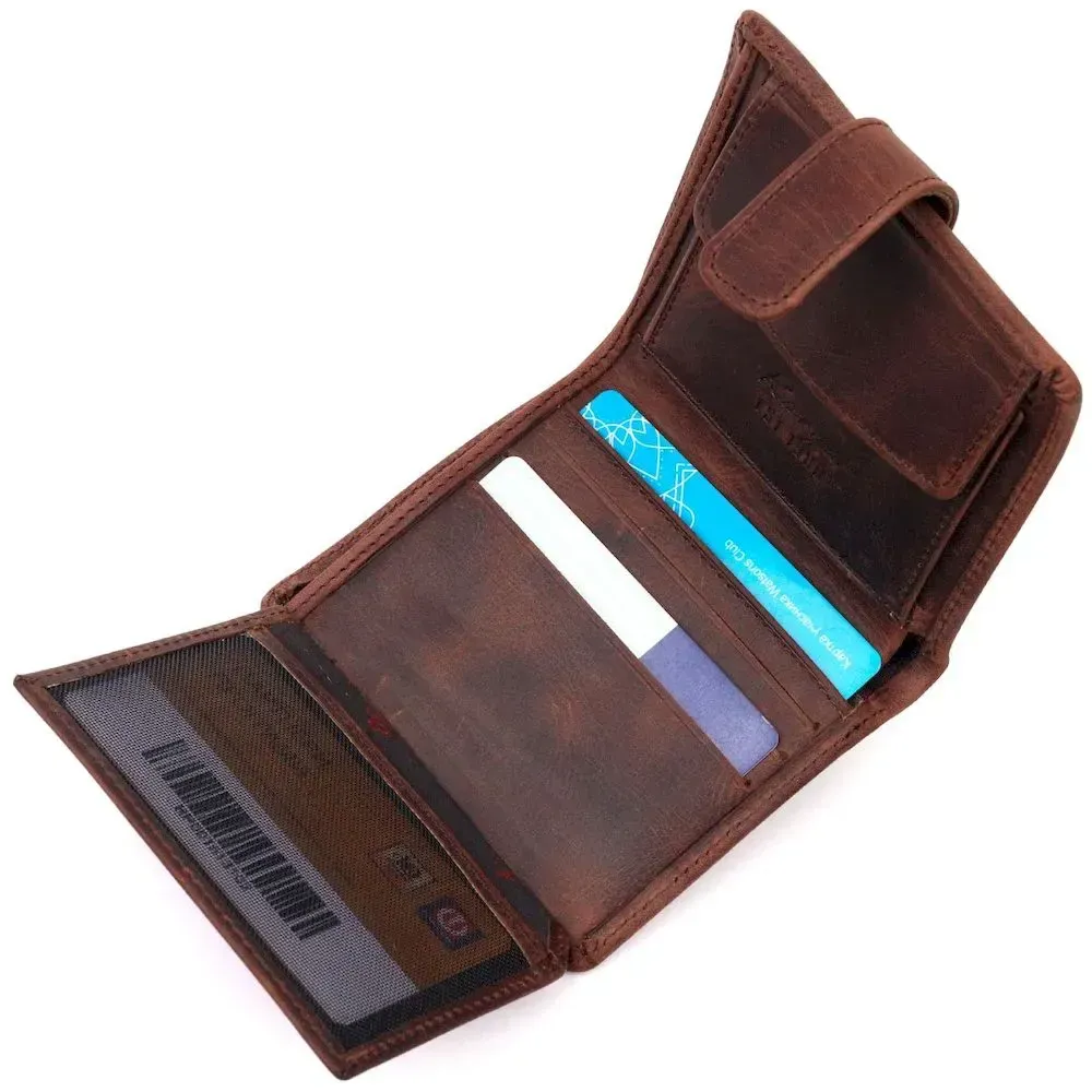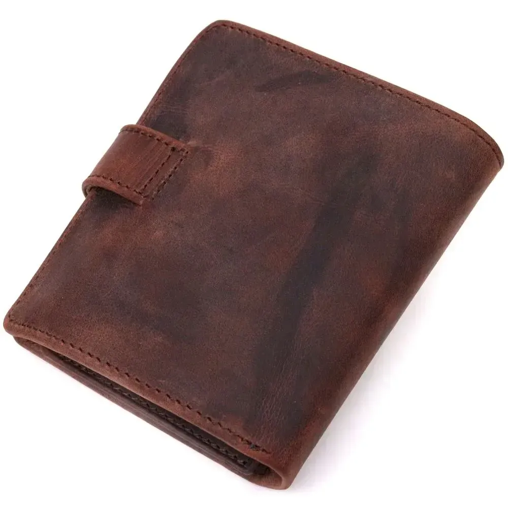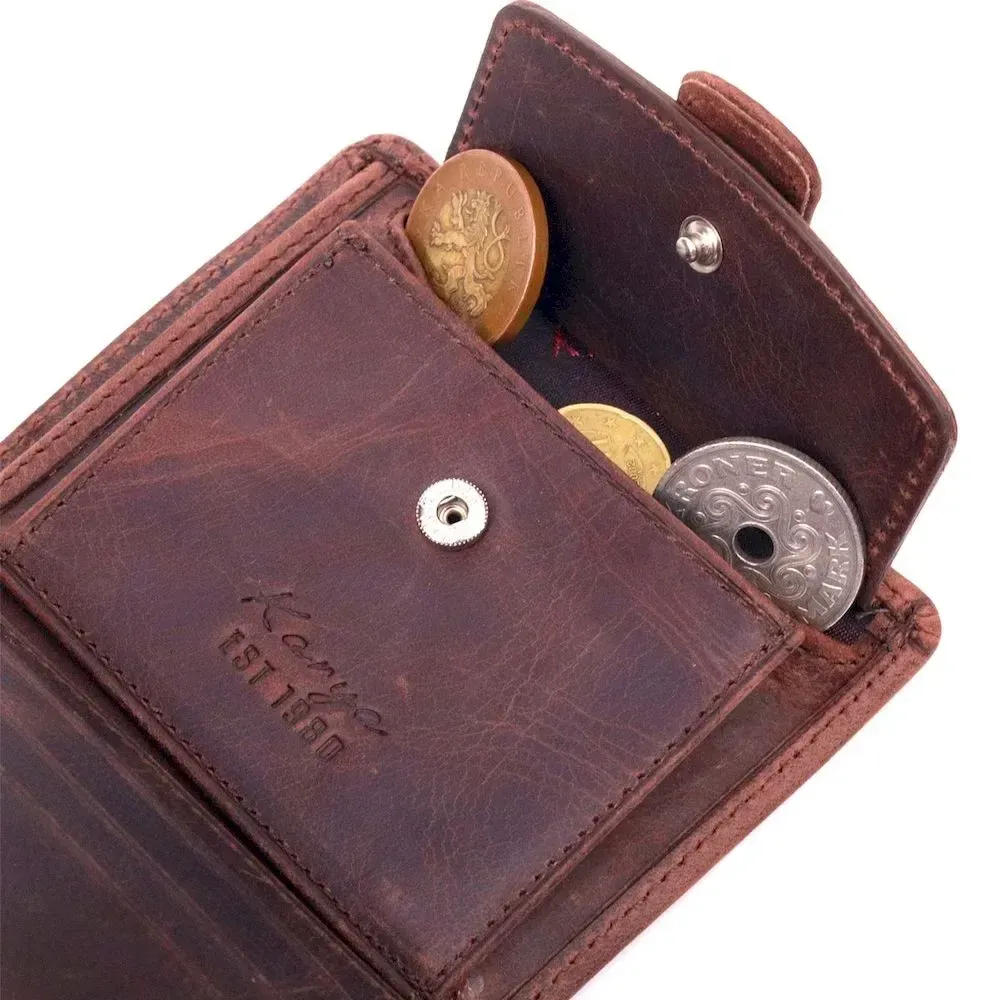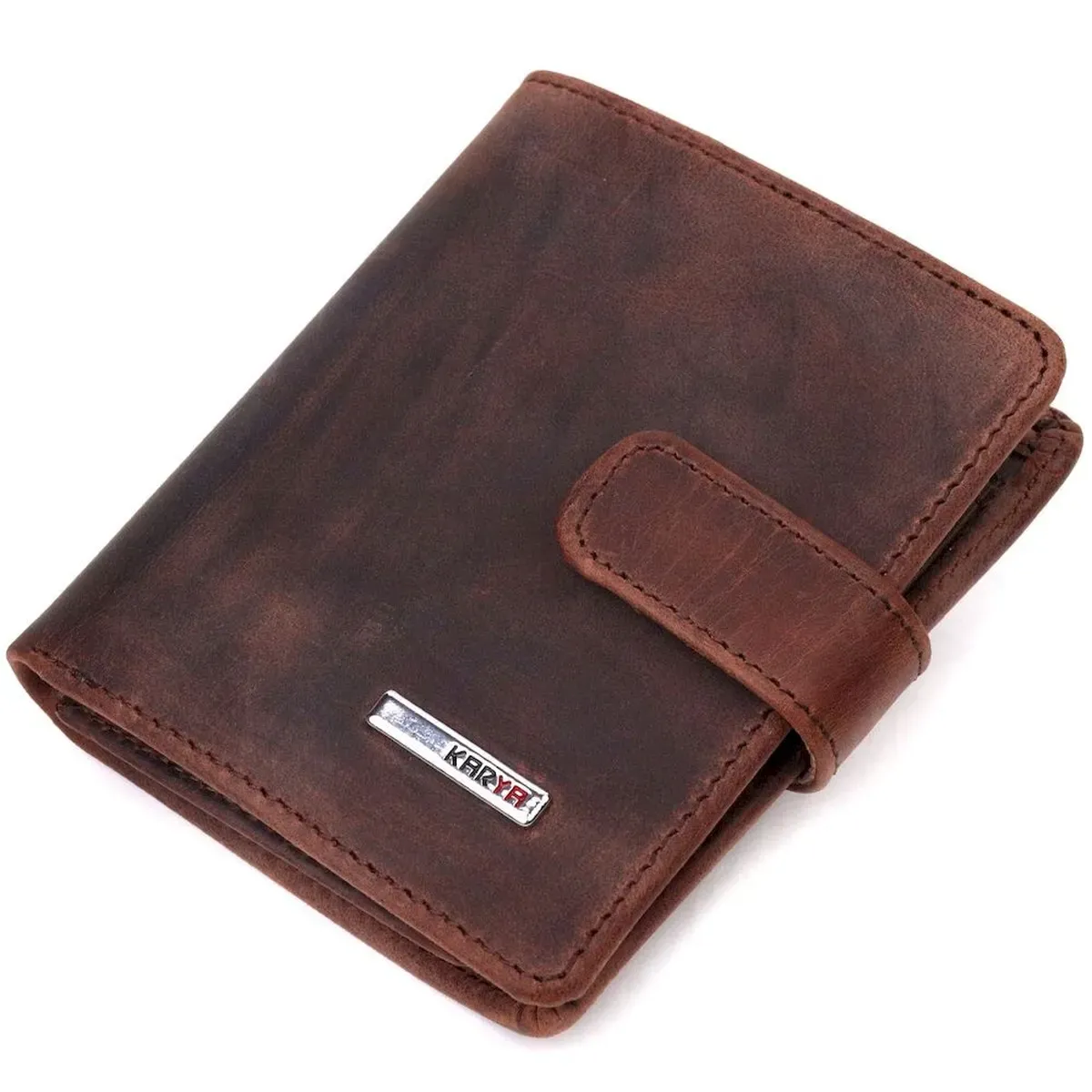 Компактный мужской бумажник из добротной винтажной кожи KARYA 21328 Коричневый