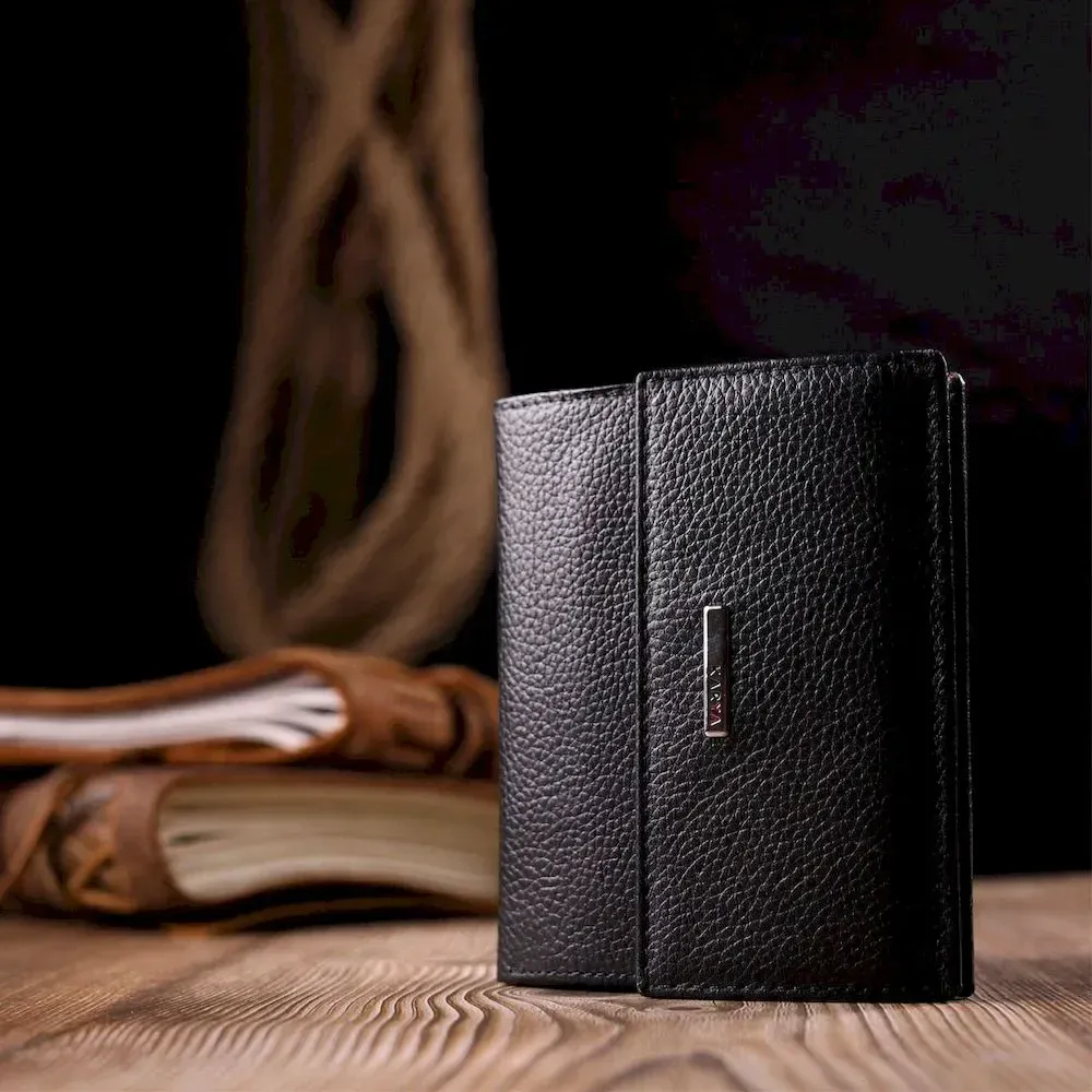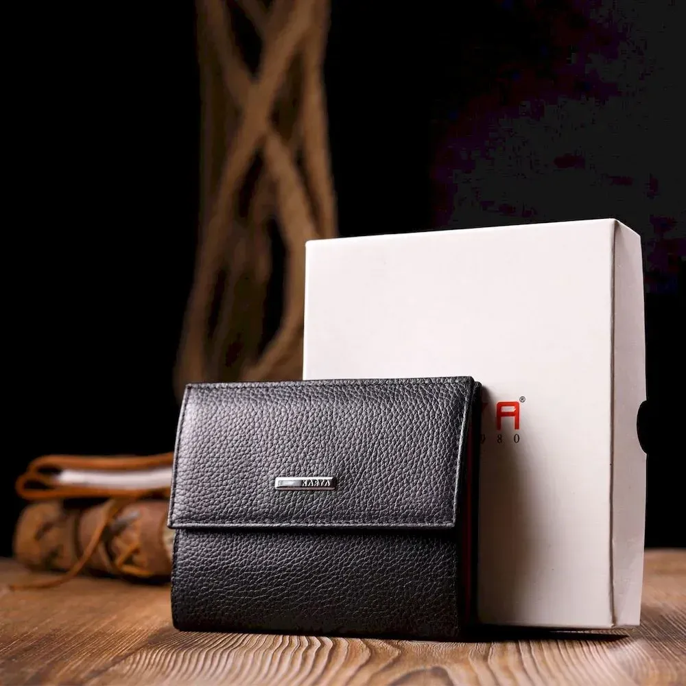 Компактный женский кошелек на магните из натуральной кожи KARYA 21185 Черный
