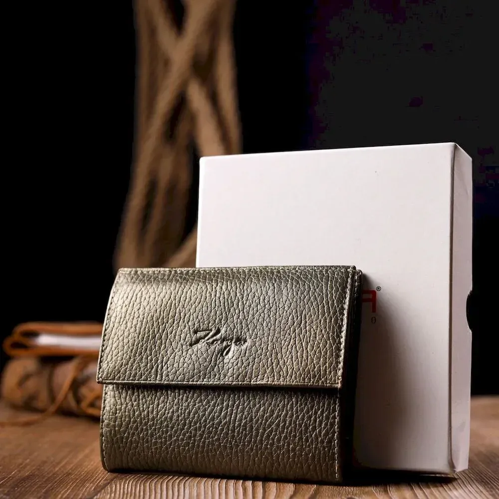 Удобный женский кошелек из натуральной кожи, в красивом оливковом цвете. Качественная фурнитура дополняет и украшает изделие. Такой кошелек из натуральной кожи - это идеальный вариант на каждый день для тех, кто ценит качество, удобство и комфорт, а также будет отлично дополнять Ваш повседневный образ. Упакован аксессуар в фирменную коробку и пакет бренда. Изделия из натуральной кожи всегда будут отличным подарком для близкого человека.