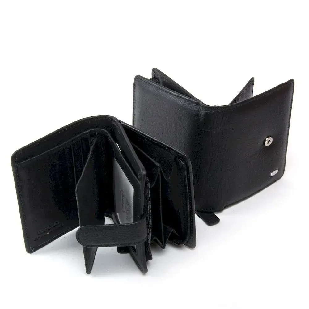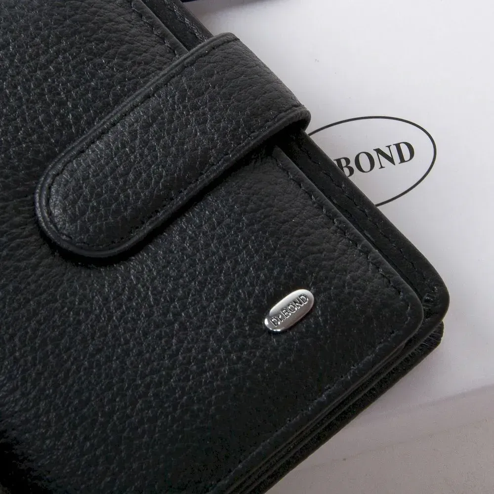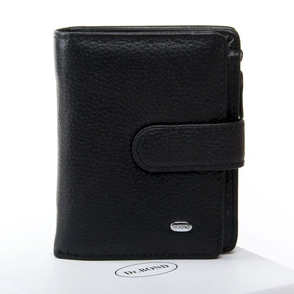 Женский кошелек Dr.Bond. Изготовлен из натуральной мягкой кожи с естественной текстурой. Основное отделение закрывается клапаном на кнопке. Внутри находится одно открытое отделение для банкнот, 10 карманов для визитных карт и 1 прозрачный кармана. Снаружи кошелька на обратной стороне находится двойная монетница на молнии.
