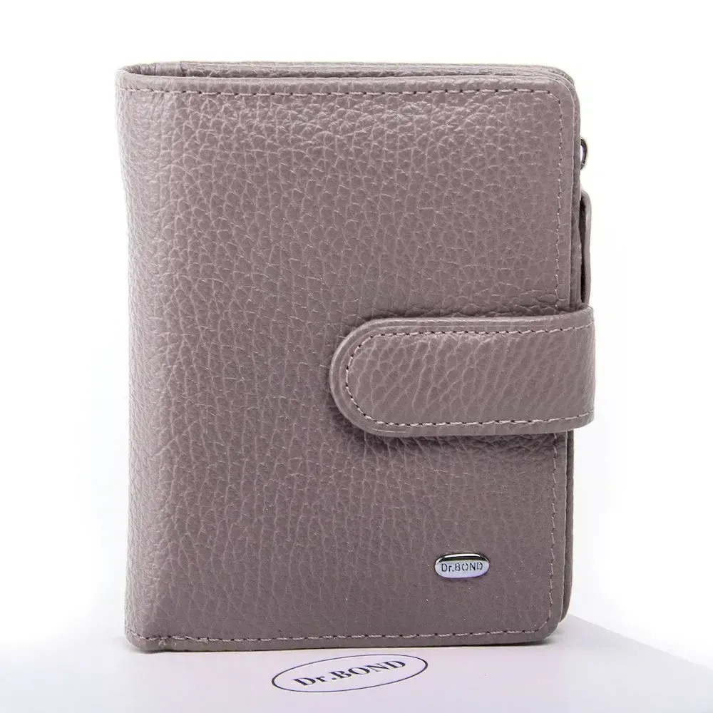 Женский кошелек Dr.Bond. Изготовлен из натуральной мягкой кожи с естественной текстурой. Основное отделение закрывается клапаном на кнопке. Внутри находится одно открытое отделение для банкнот, 10 карманов для визитных карт и 1 прозрачный кармана. Снаружи кошелька на обратной стороне находится двойная монетница на молнии.