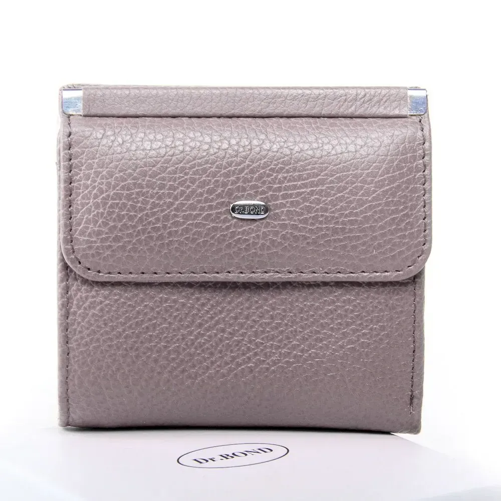 Женский кошелек Dr.Bond. Изготовлен из натуральной мягкой кожи с естественной текстурой. Основное отделение закрывается на магнит. Внутри находится одно открытое и одно на молнии отделения для банкнот, разделенные кожаной перегородкой, 4 карманов для визитных карт и 1 прозрачный карман. Снаружи кошелька на фасаде находится двойная монетница на кнопке.