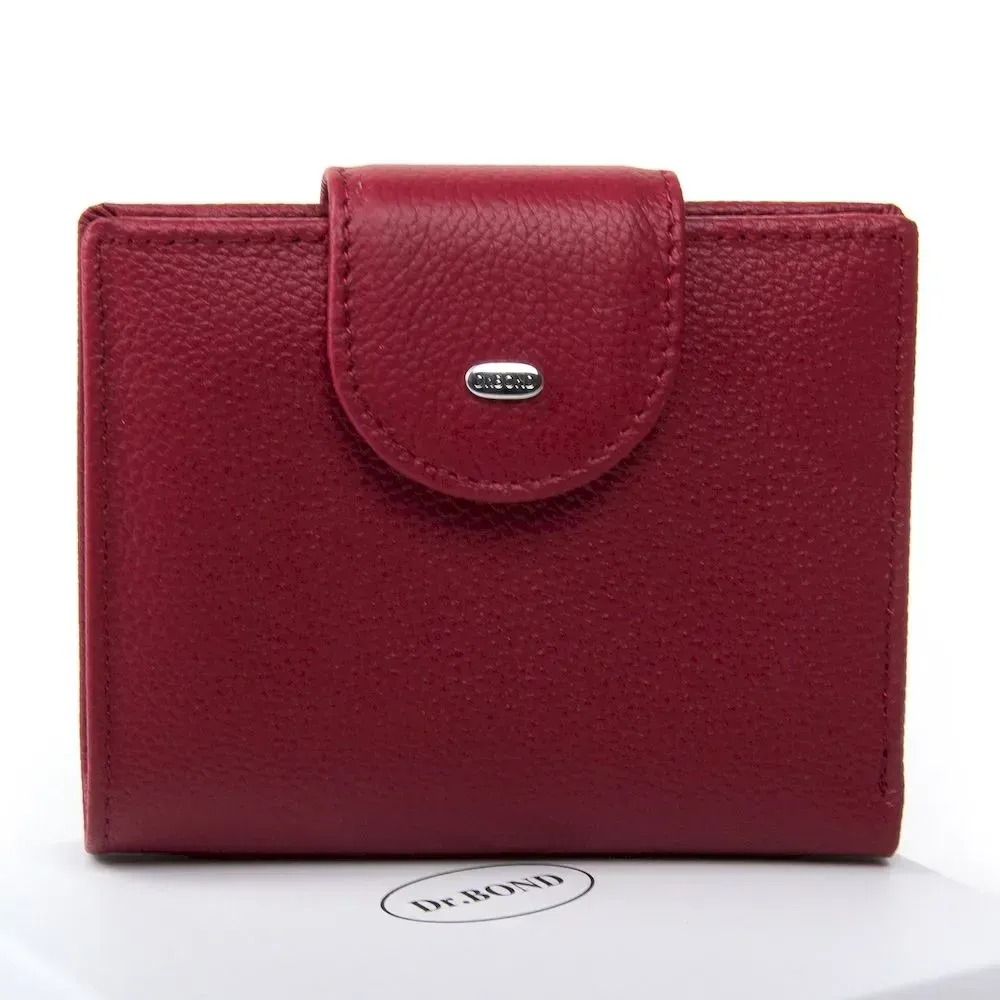 Женский кошелек Dr.Bond. Изготовлен из натуральной мягкой кожи с естественной текстурой. Закрывается клапаном на кнопке. Внутри находятся два открытых отделения для банкнот, разделенные кожаной перегородкой, 3 кармана для визитных карт, 2 больших прозрачных кармана и монетница на кнопке.