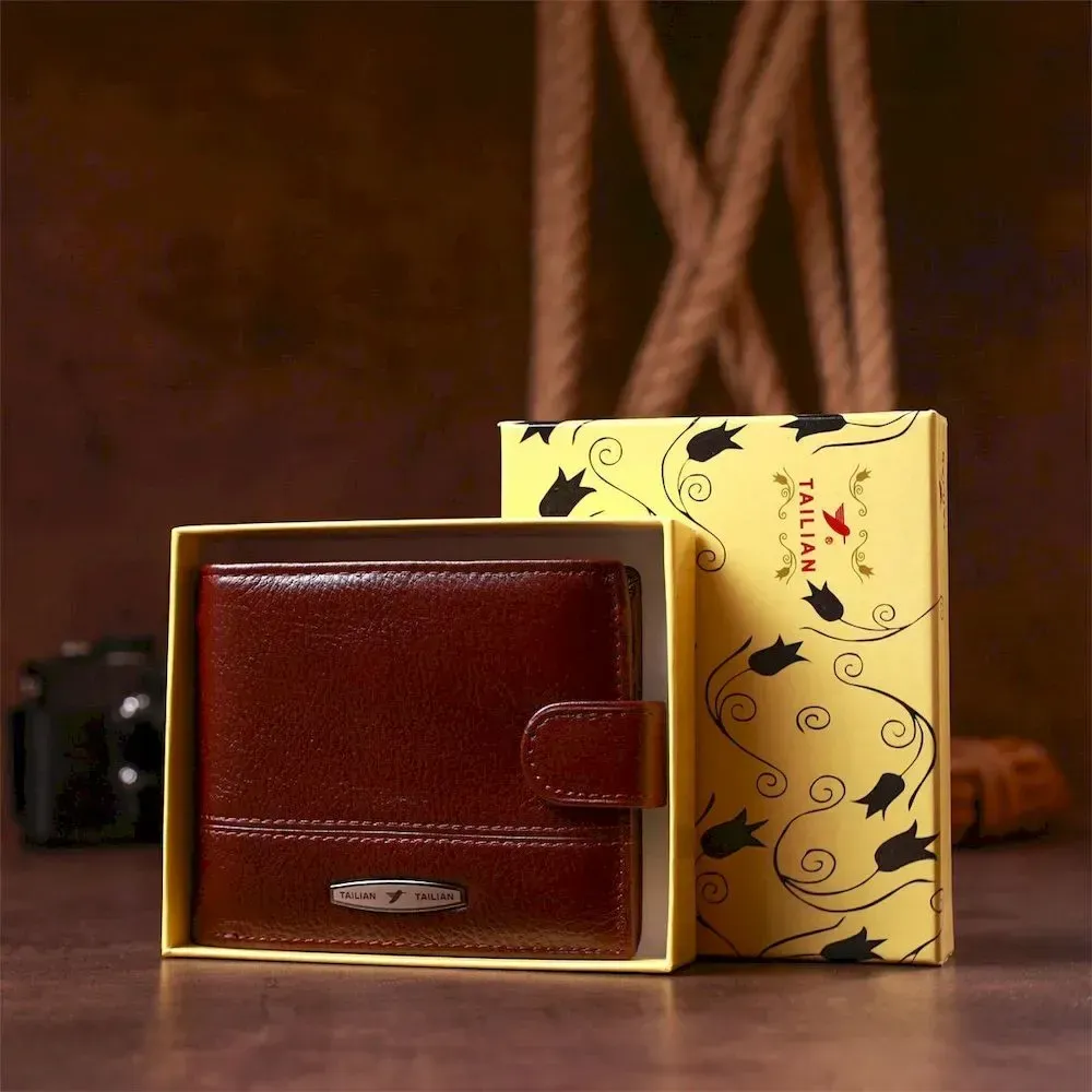 Кошелек горизонтальный мужской флотар кожаный TAILIAN 19009 Коричневый