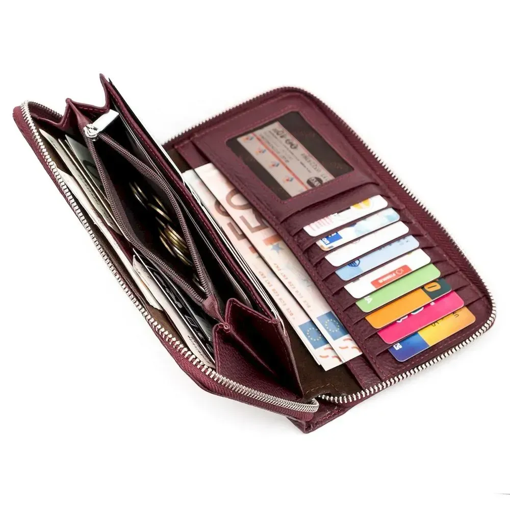 Превосходный женский кошелек-клатч, из натуральной фактурной кожи. Такой кошелек очень вместительный, в него легко помещается мобильный телефон, документы и другие мелочи. Отличная идея для подарка, которая не оставит равнодушной ни одну женщину.