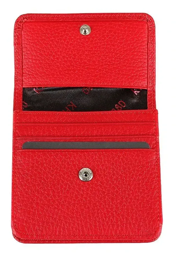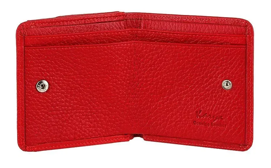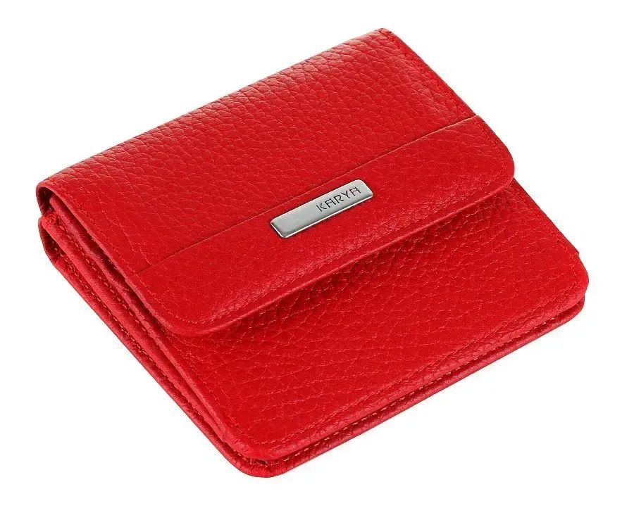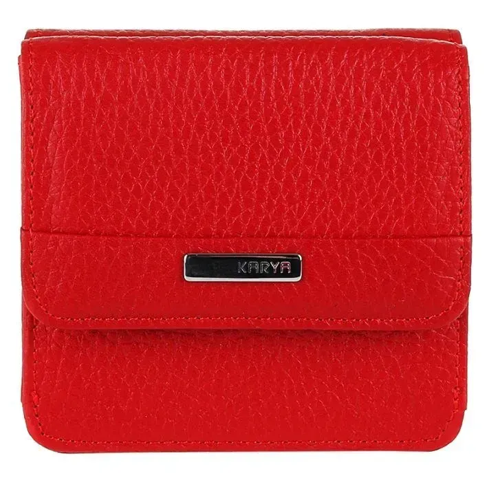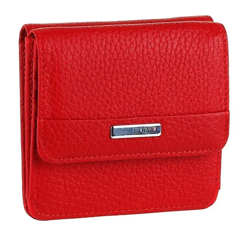 Яркий женский кошелек, из натуральной зернистой фактурной кожи. Внутренняя отделка аксессуара - сочетание прочного текстиля и гладкой кожи. Портмоне очень компактное, но при этом практичное.
