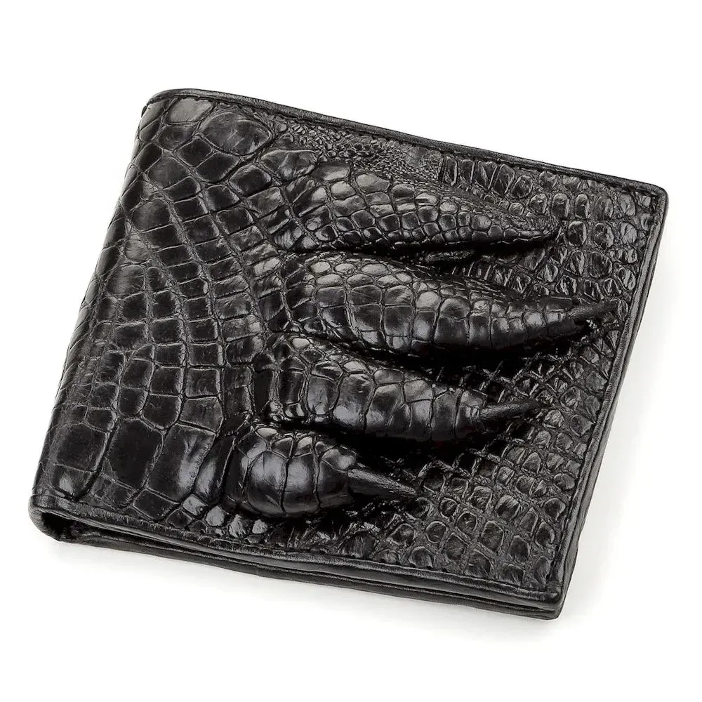 Портмоне из натуральной кожи крокодила. Изделие декорировано настоящей лапой крокодила, которая добавляет аксессуару оригинальности. Изделия из кожи крокодила всегда считались большой роскошью, так как в мире не так уж много компаний, которые занимаются выделкой такой кожи, поскольку этот процесс действительно чрезвычайно трудоемки