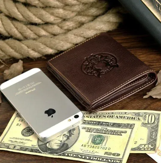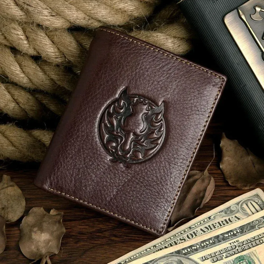 Очень красивый мужской кошелек из натуральной кожи европейского качества. На лицевой стороне изделия присутствует тиснение «тигра». Изделие прошито прочной нитью, благодаря чему служить оно будет долгое время. Такой кошелек можно преподнести в качестве подарка ко Дню Рождения.