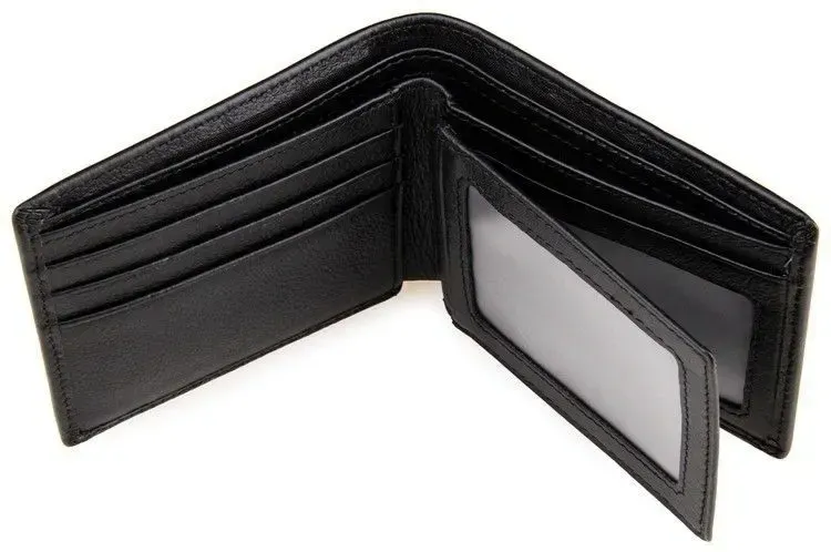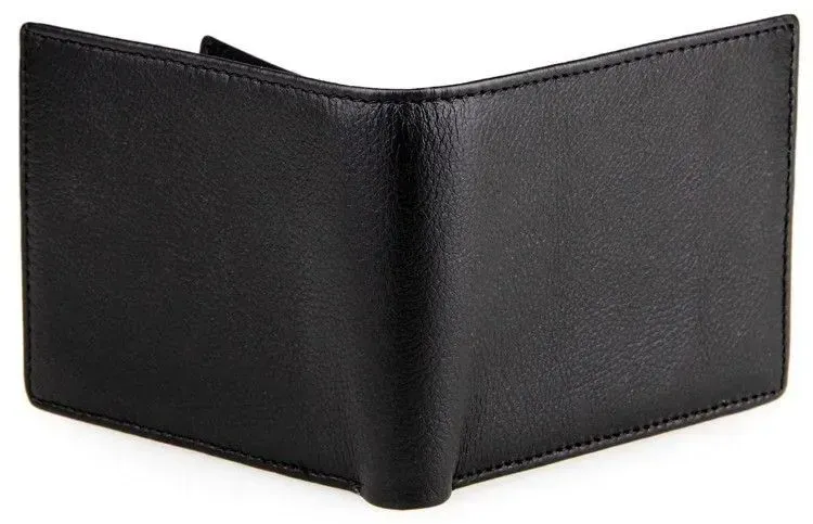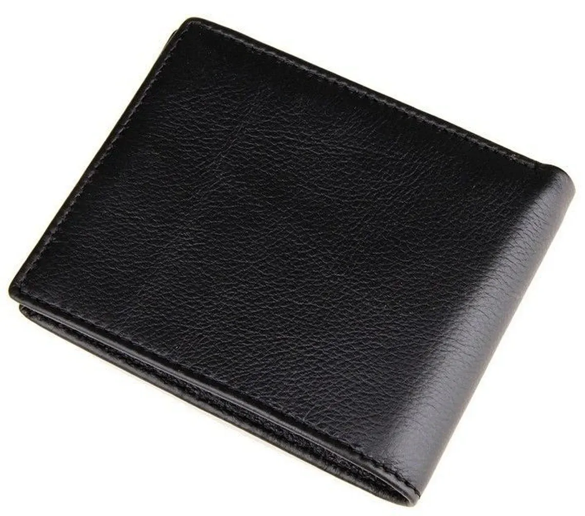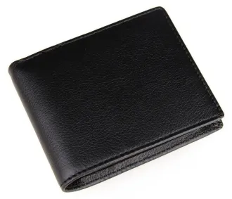 Компактный мужской бумажник черного цвета. Аксессуар выполнен из натуральной, высококачественной кожи приятно на ощупь. Изделие аккуратно прошито сверхпрочной нитью. Кошелек упакован в текстильный пылезащитный мешочек белого цвета.