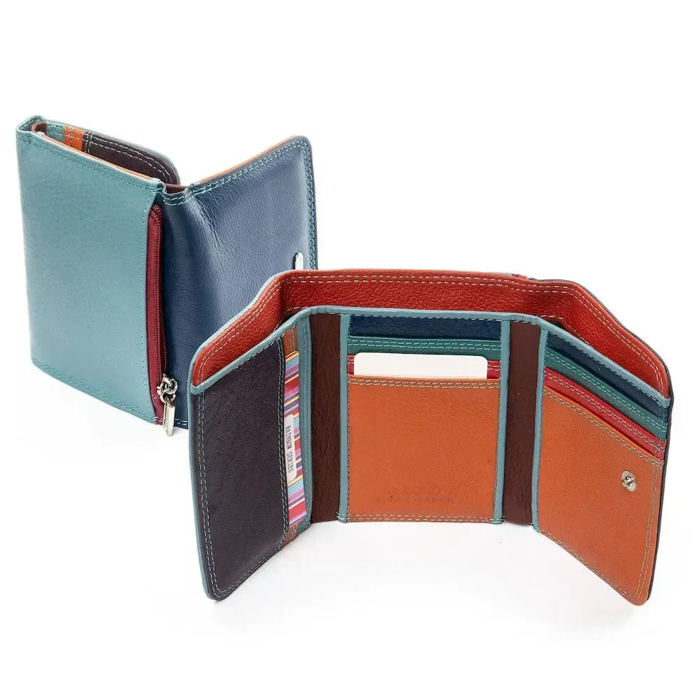 Женский компактный кошелек Dr.Bond. Изготовлен из натуральной мягкой кожи с естественной текстурой. Складывается втрое и закрывается на кнопку. Внутри находятся два открытых отделения для банкнот, разделенные кожаной перегородкой, 8 карманов для визитных карт и 3 открытых кармана. Снаружи кошелька на обратной стороне есть монетница на молнии.