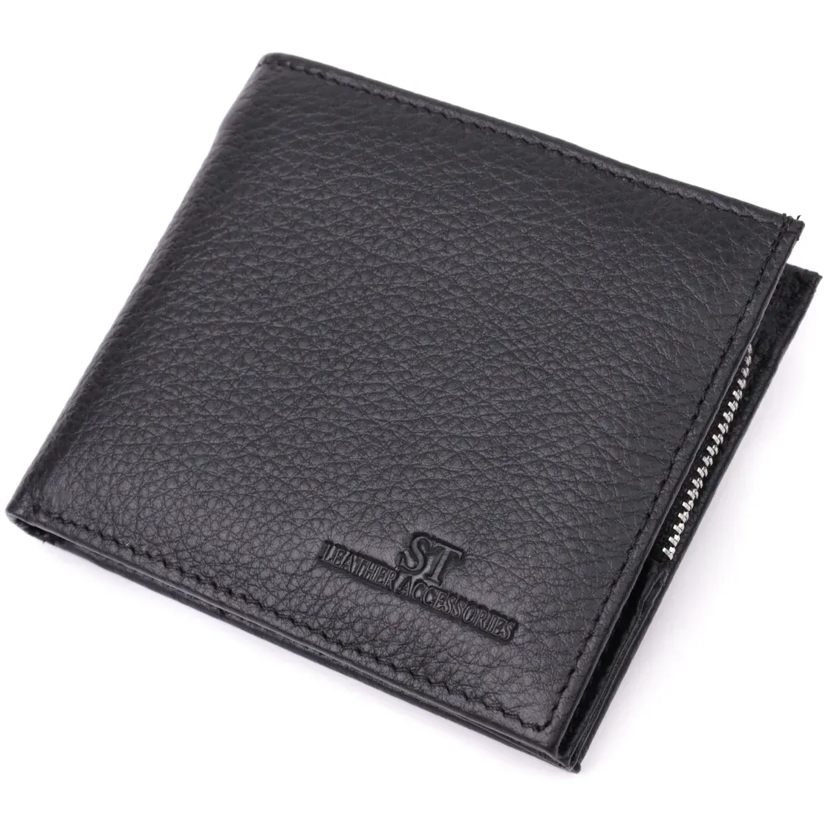 Кошелек среднего размера с оригинальной монетницей из натуральной кожи ST Leather 22458 Черный