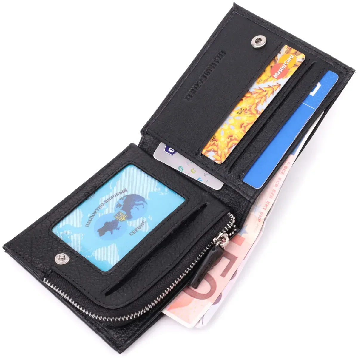 - 1 карман для монет, что закрывается на молнию;