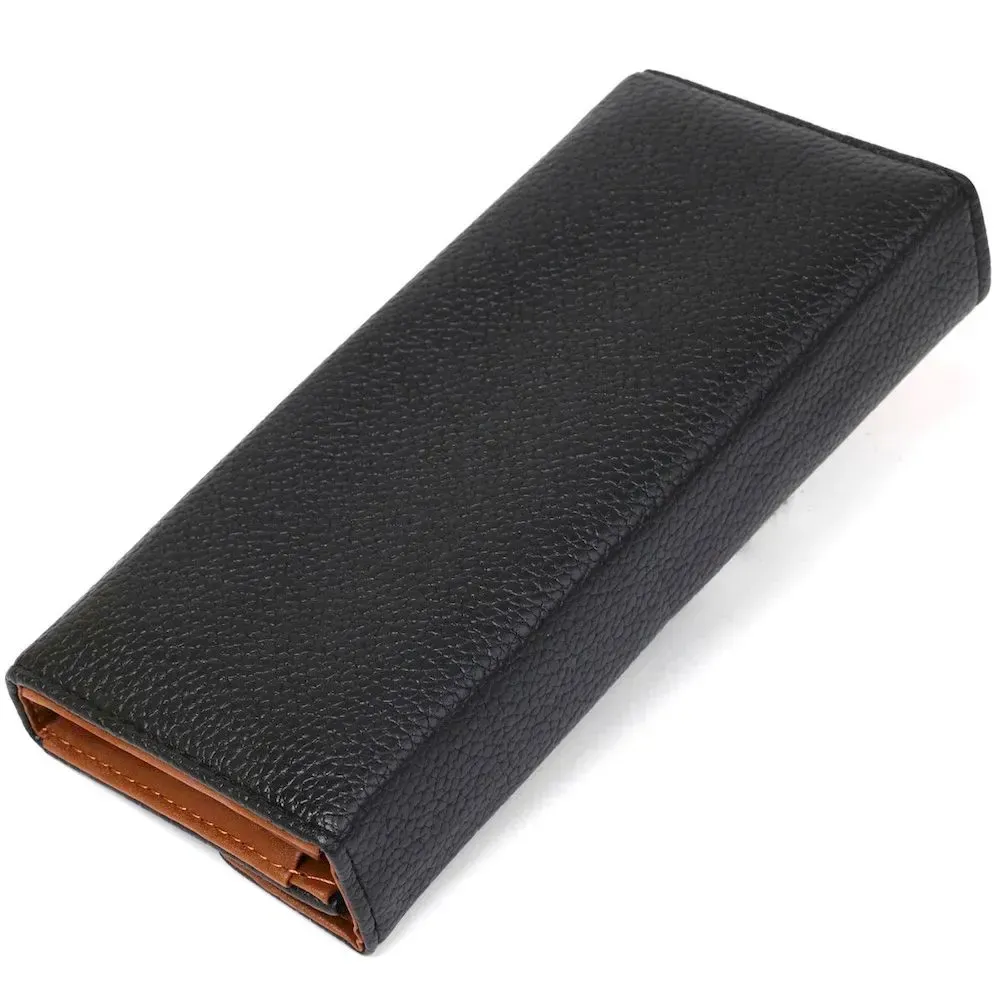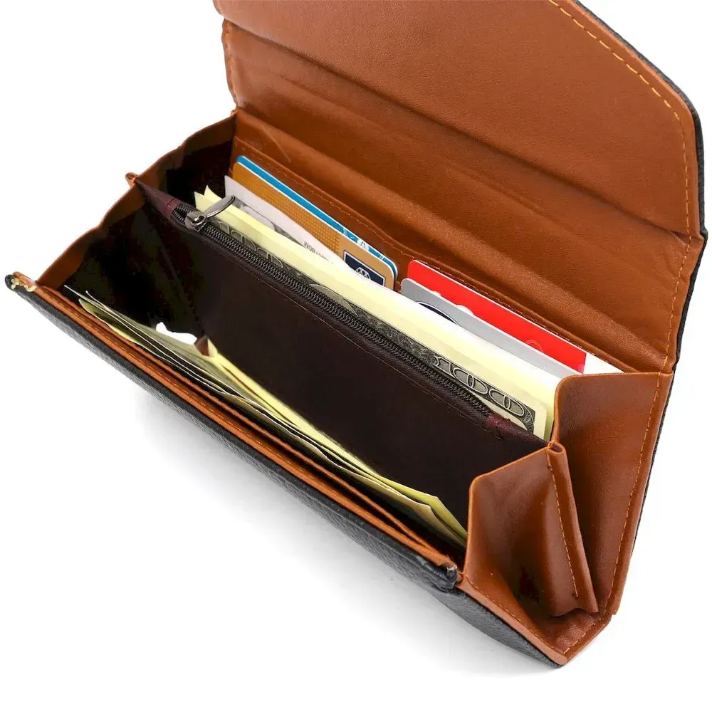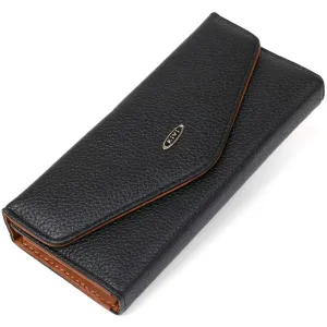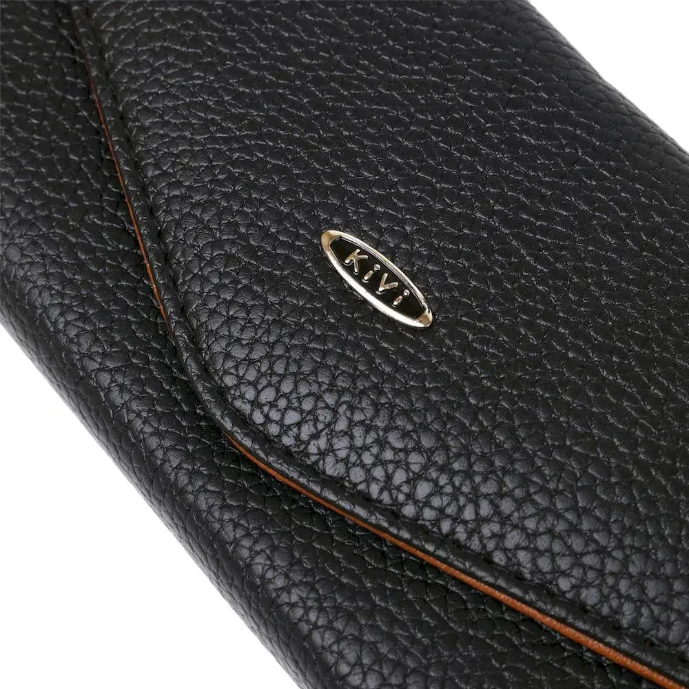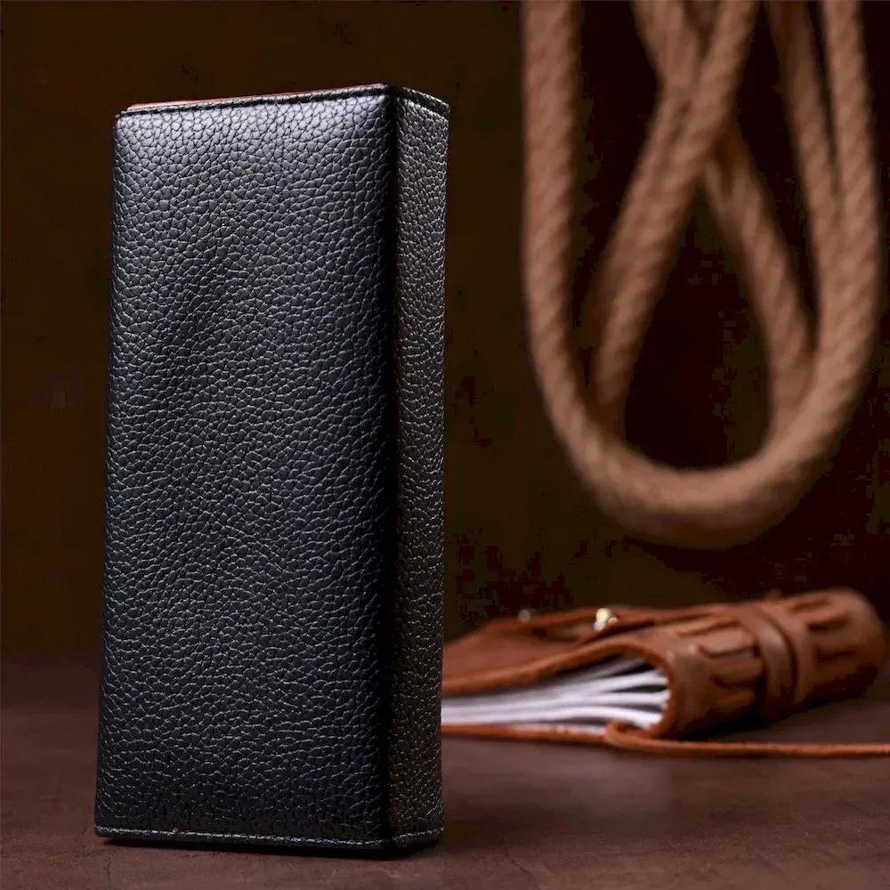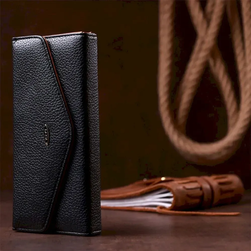 Модель кошелька напоминает конверт. Тонкий и легкий аксессуар с удобным функционалом. Зернистая экокожа достаточно практичная в эксплуатации и не требует к себе особого ухода. Модель закрывается на клапан с магнитной кнопкой. Внутри экокожа коричневого цвета в сочетании с прочным текстилем.