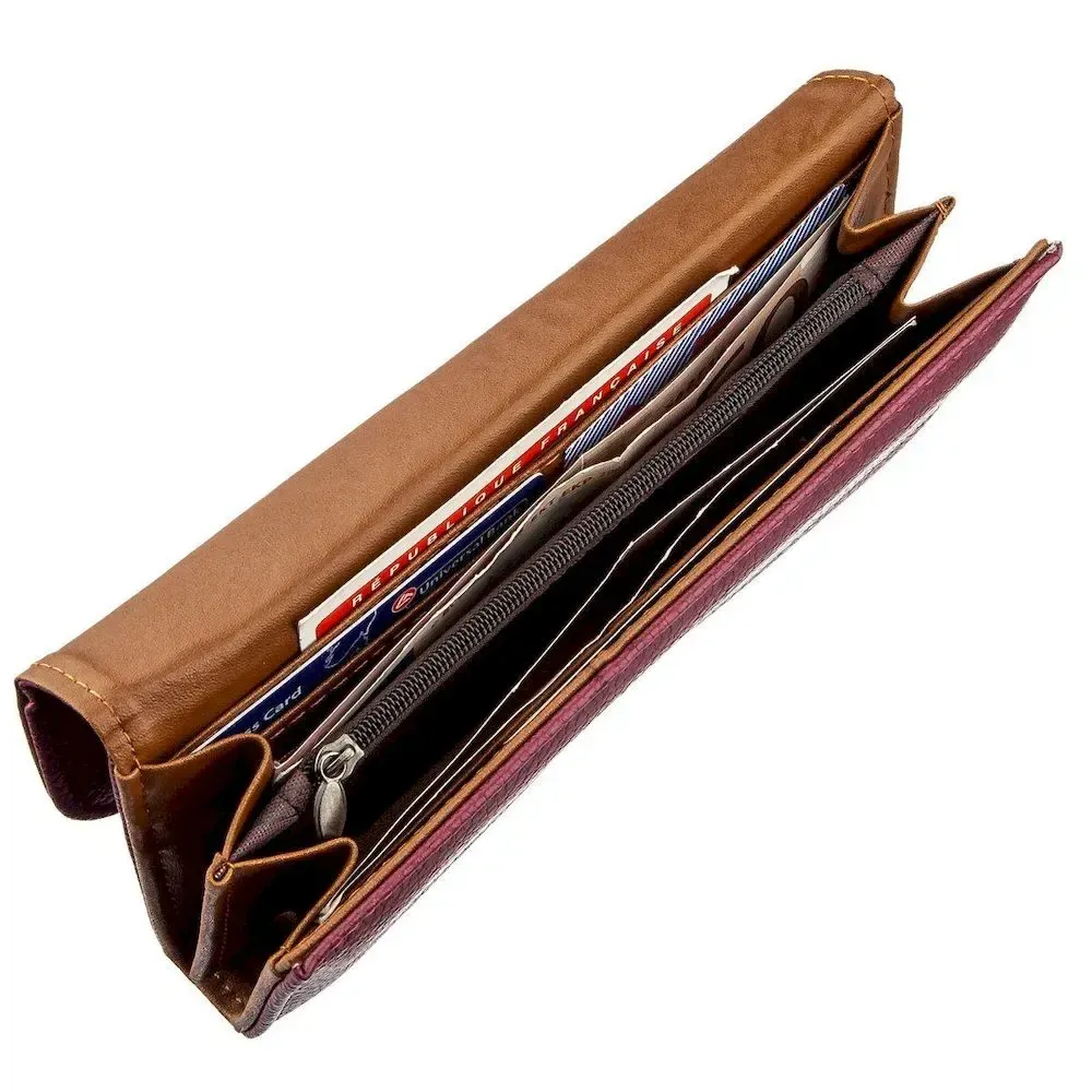 Удобный и вместительный женский кошелек из экокожи спокойного малинового цвета. Аксессуар дополнен удобными, вместительными отделениями и блоком с ячейками для карточек. Изящная женская модель, продуманная до самих мелочей порадует любую девушку и подчеркнет отменное чувство стиля. Кошелек будет прекрасным подарком для любой девушки.
