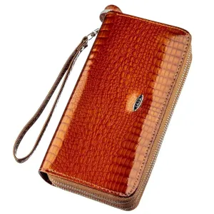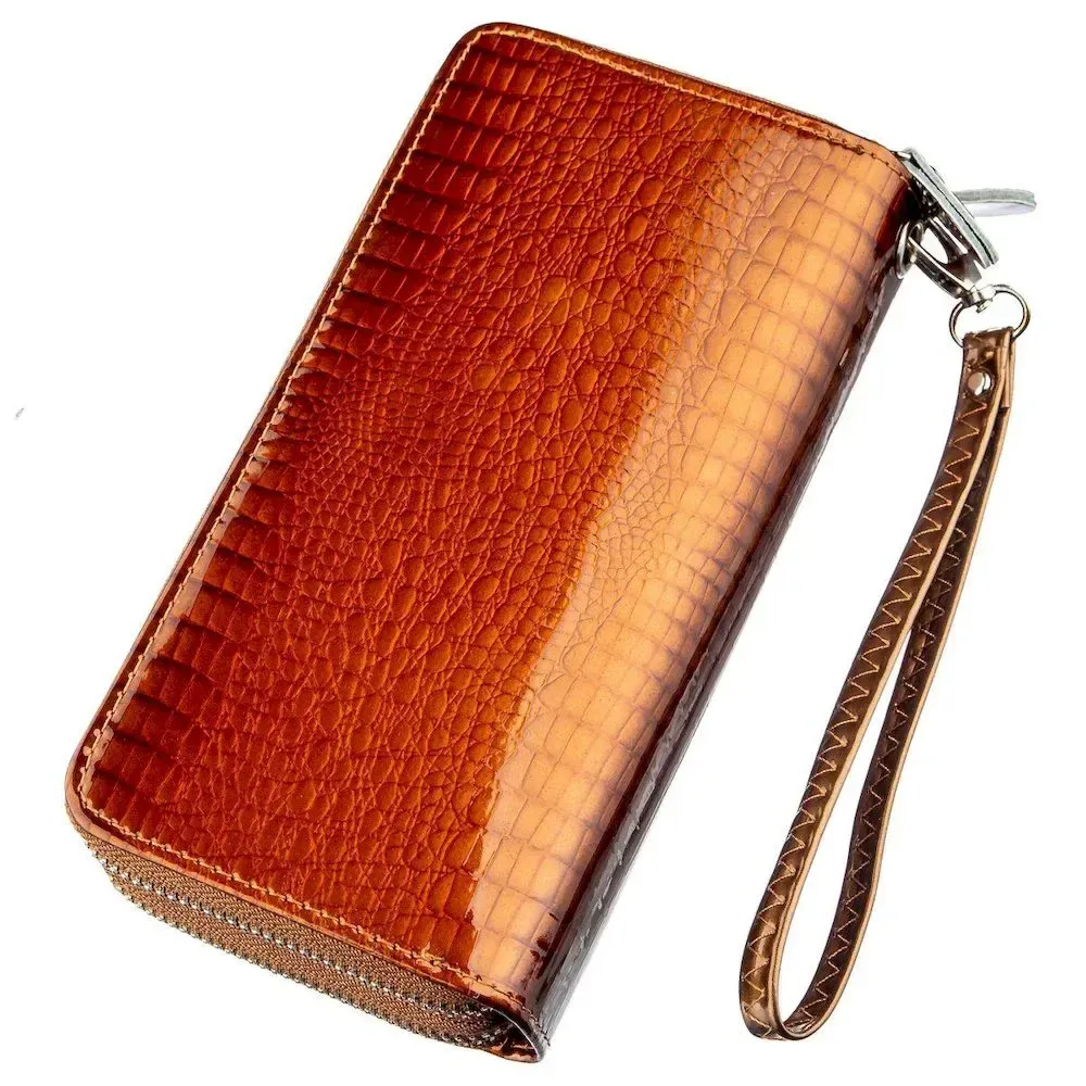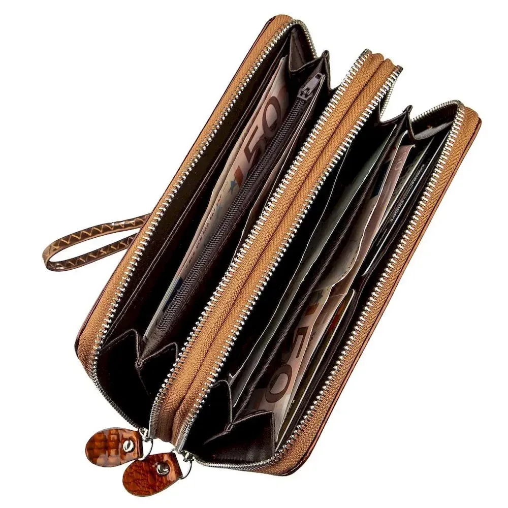 Кошелек женский из экокожи на две молнии KIVI Хамелеон 19020 Коричневый