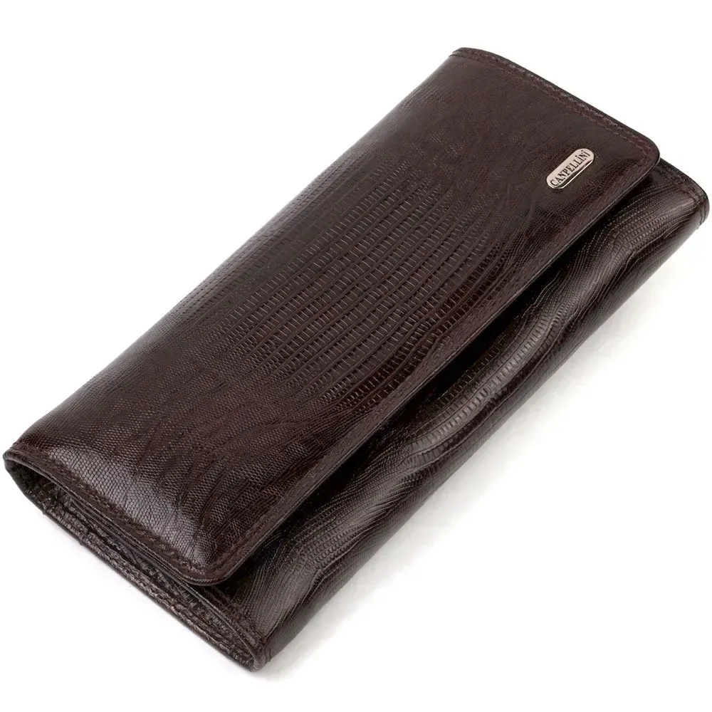 Кошелек женский из лакированной натуральной кожи с тиснением CANPELLINI 21708 Коричневый