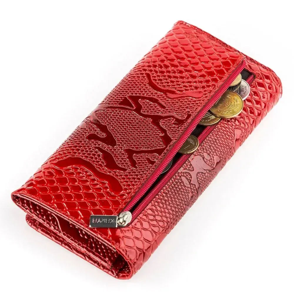Качественный женский кошелек, из фактурной натуральной кожи под рептилию. Очень аккуратный и компактный аксессуар, который подойдет женщине, которая ценит удобство и качество.