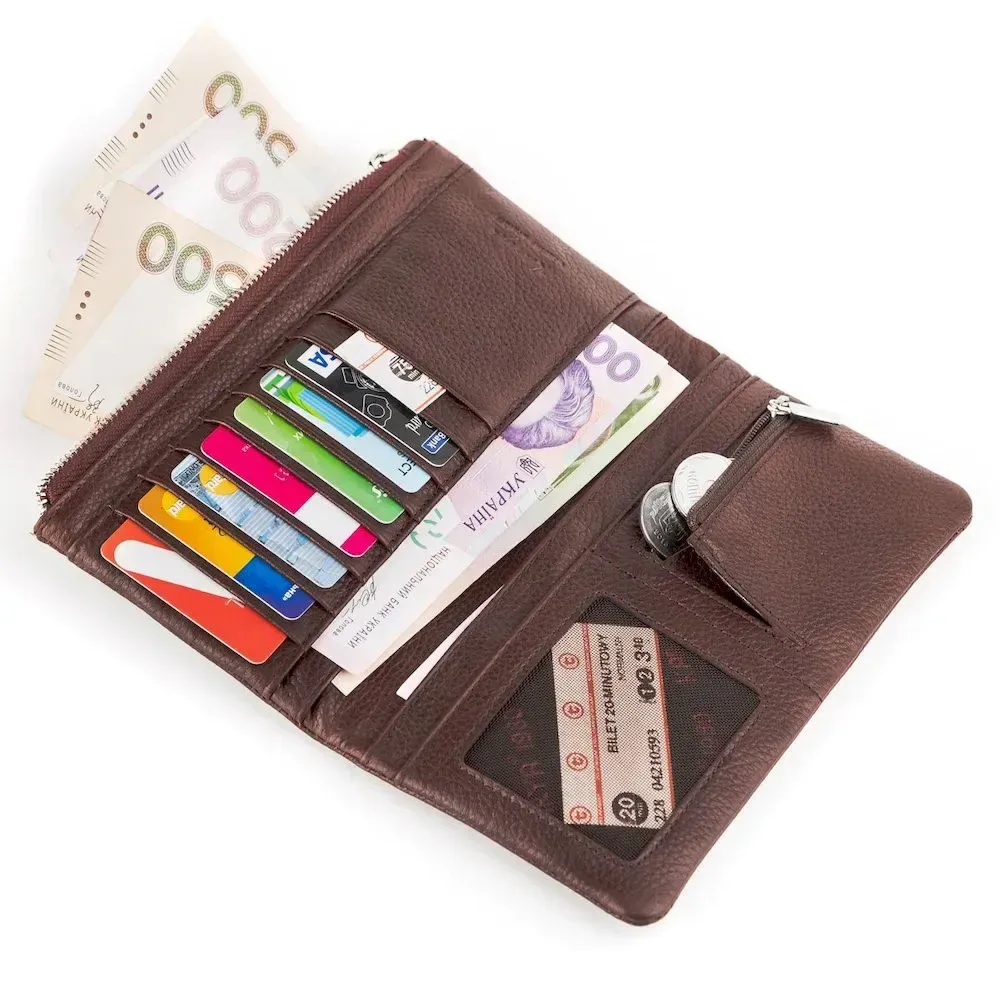 - 10 ячеек для банковских карт и одно прозрачное отделение для фото и документов;