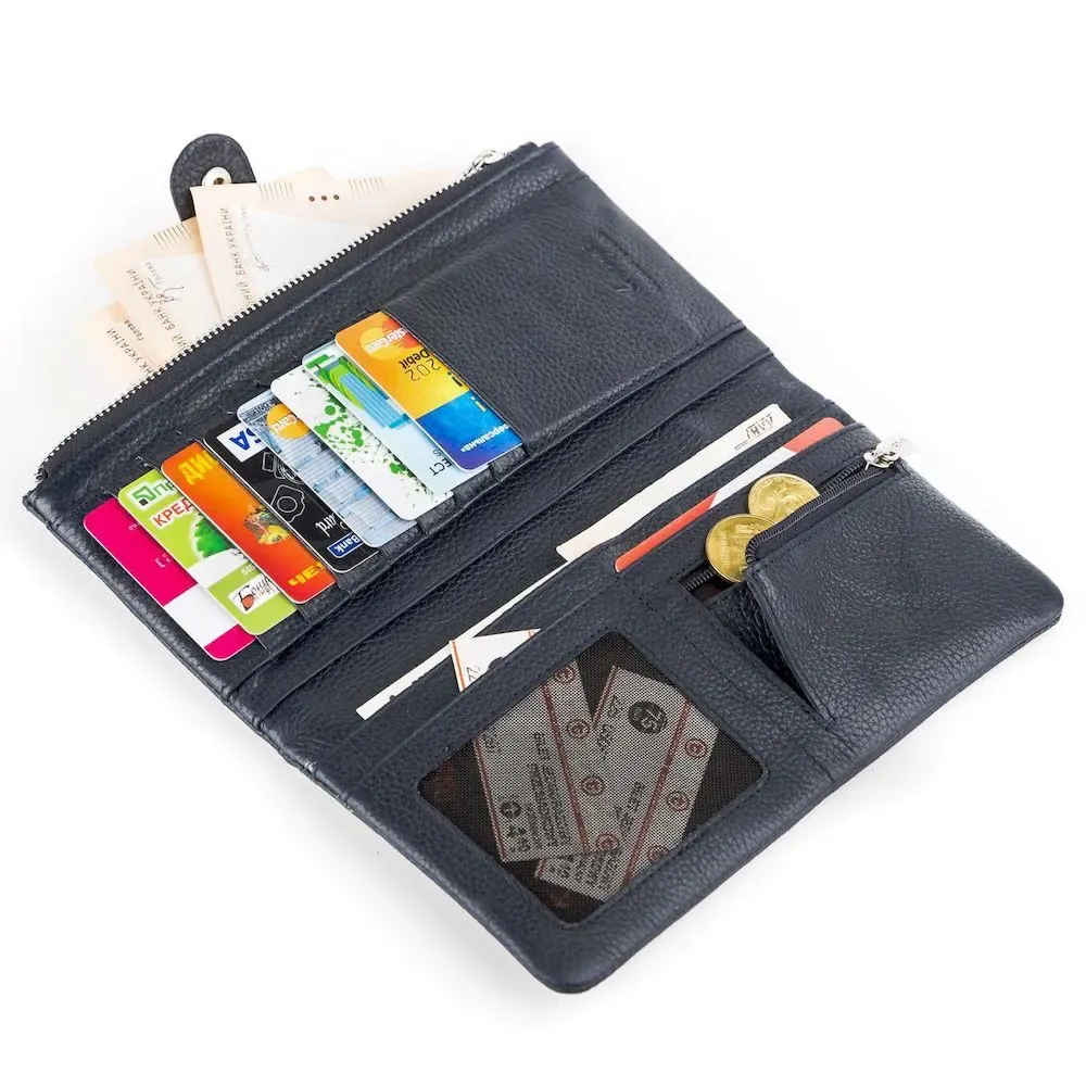 - 10 ячеек для банковских карт и одно прозрачное отделение для фото и документов;