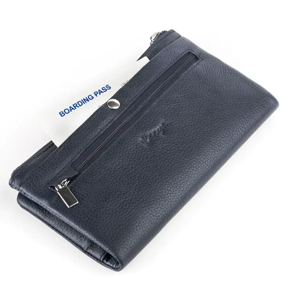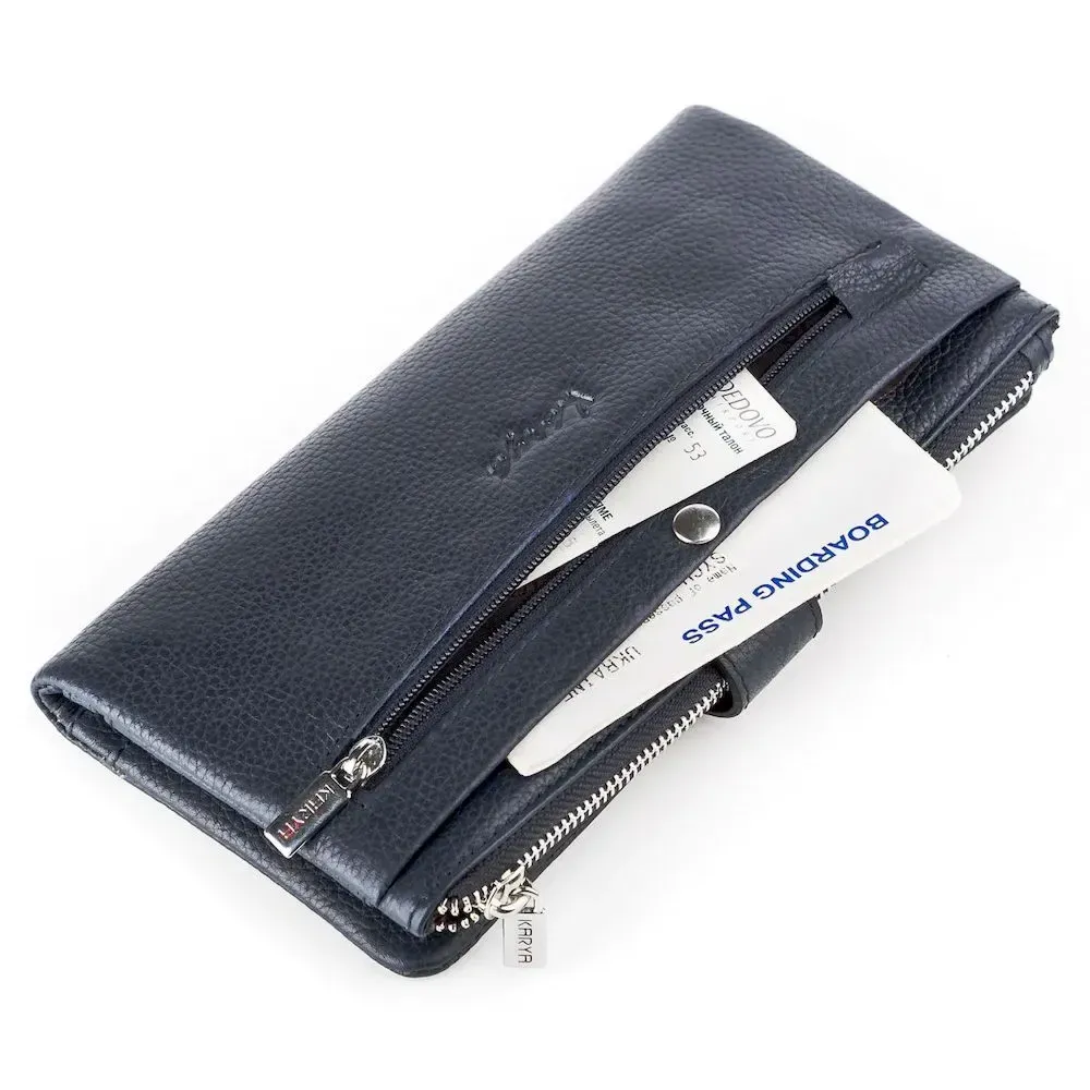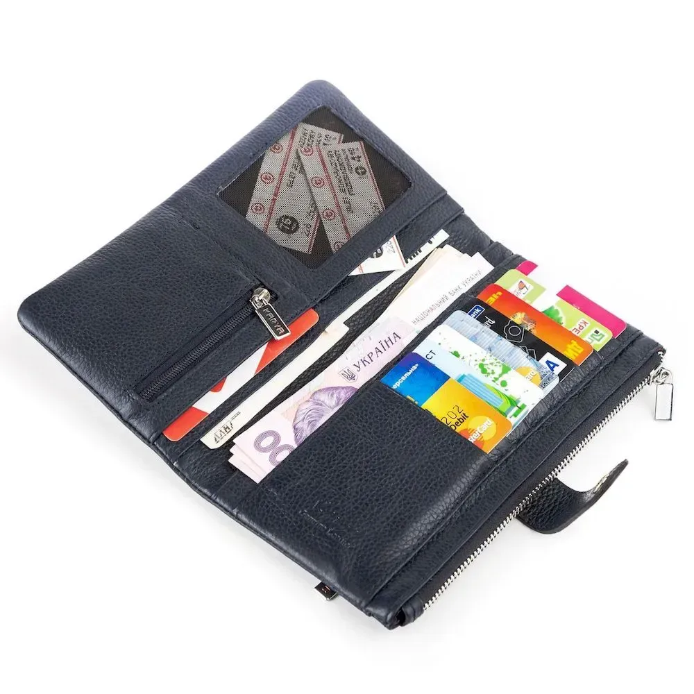 Функциональный женский кошелек, из мягкой натуральной фактурной кожи. Изделие выполнено снаружи в черном цвете, а внутри в красном. Отличный подарок для деловой и успешной женщины.